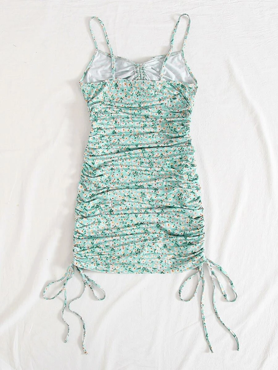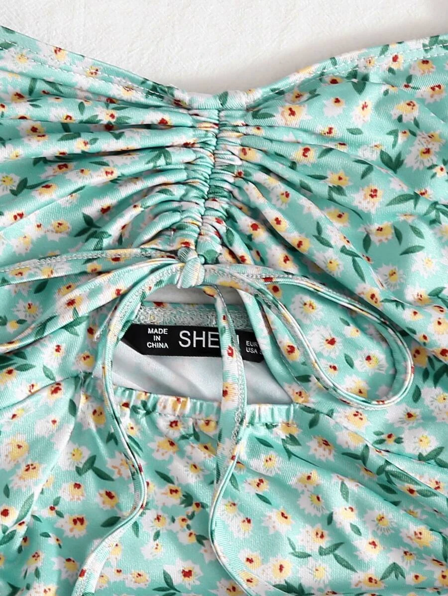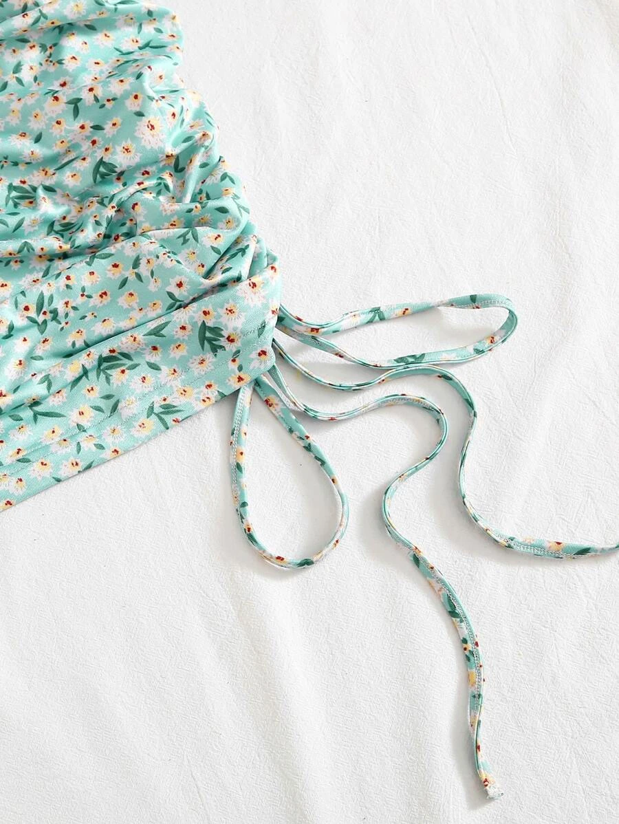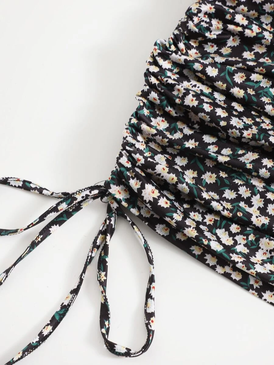 Cut Out Drawstring Knot Front Ditsy Floral Slip Dress11
