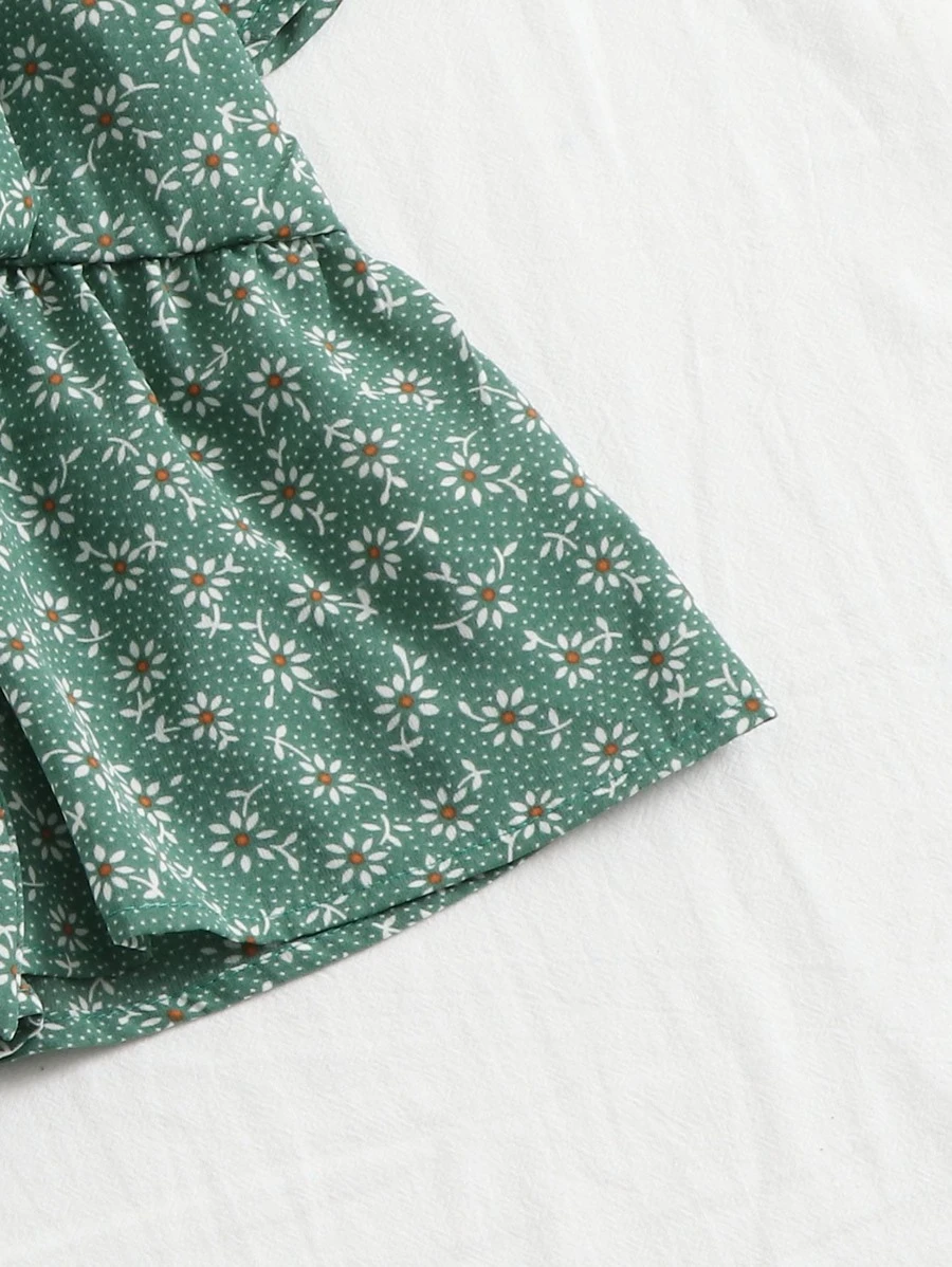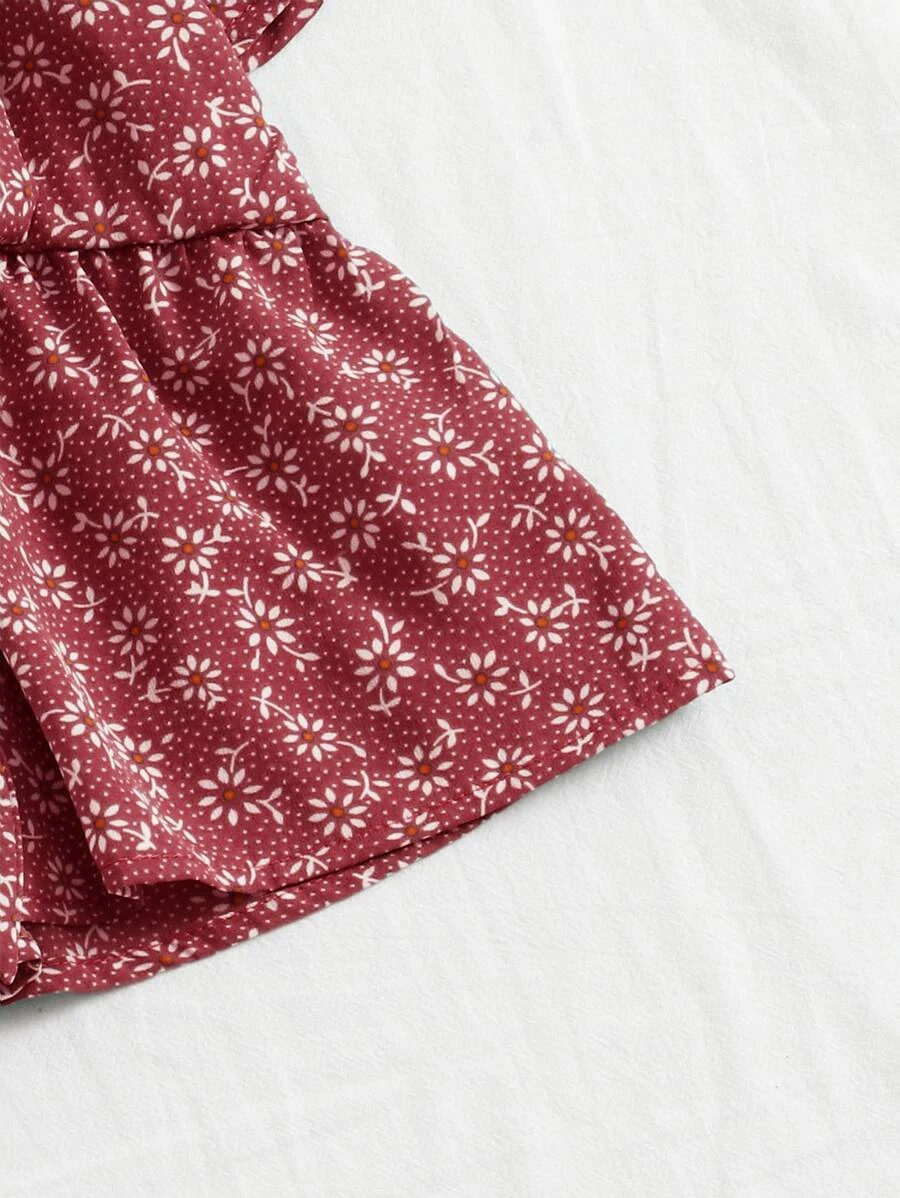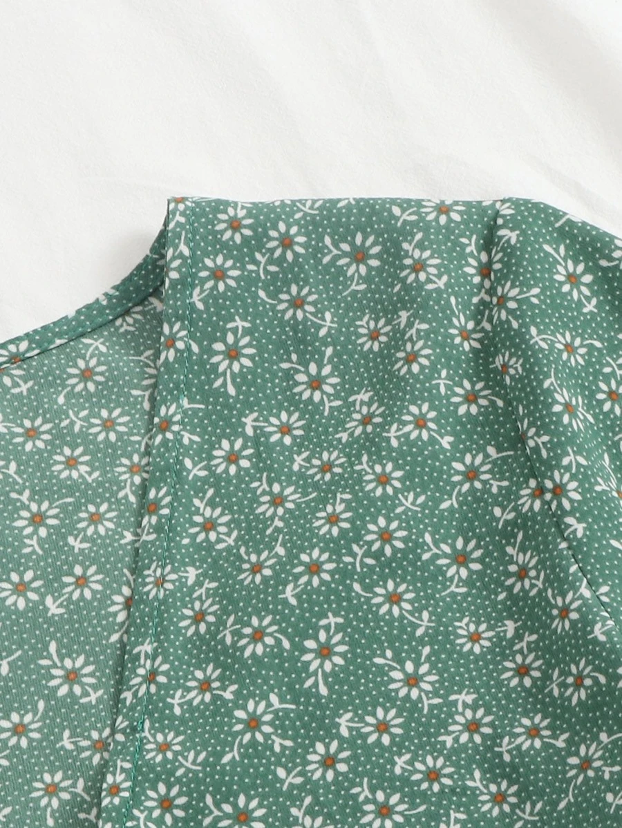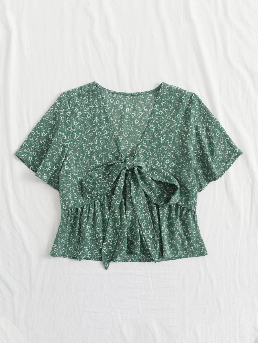 Knot Front Ditsy Floral Ruffle Hem Blouse51
