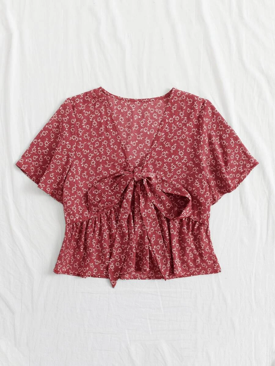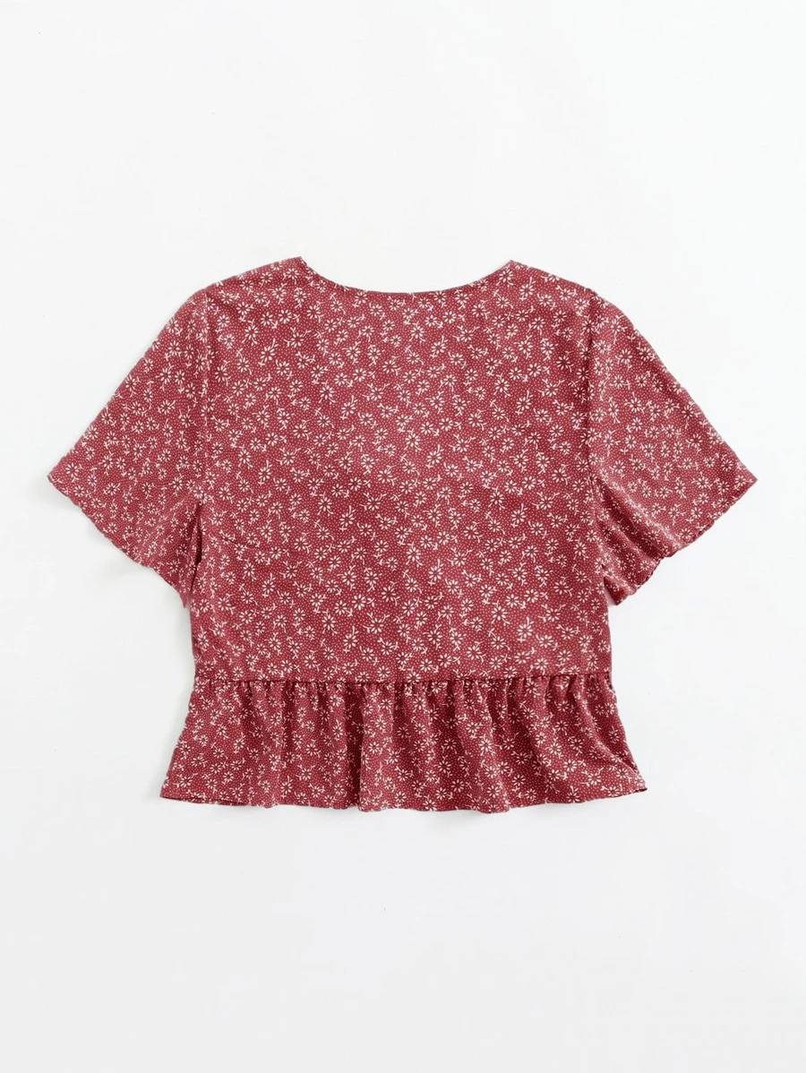 Knot Front Ditsy Floral Ruffle Hem Blouse11