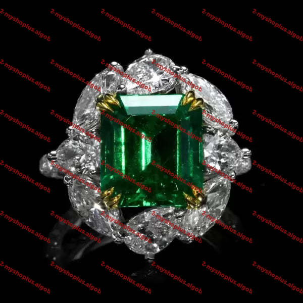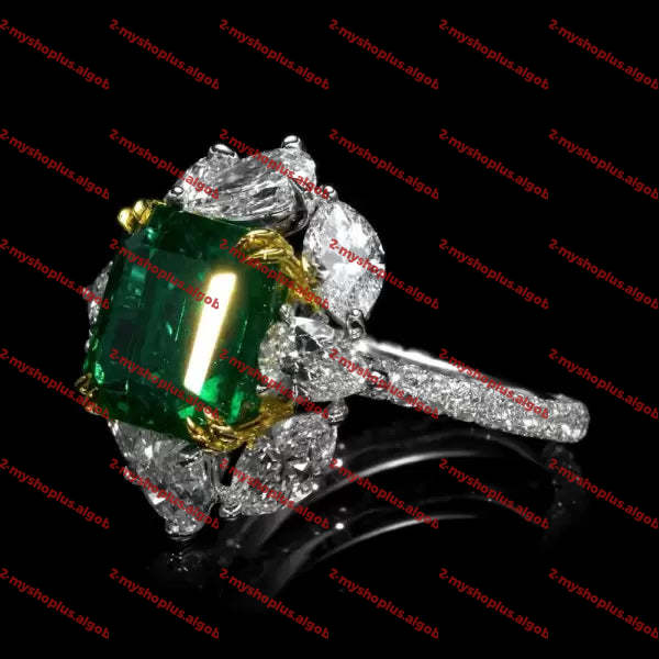 5ct Halo Emerald Cut Emerald Two Tone Engagement Ring