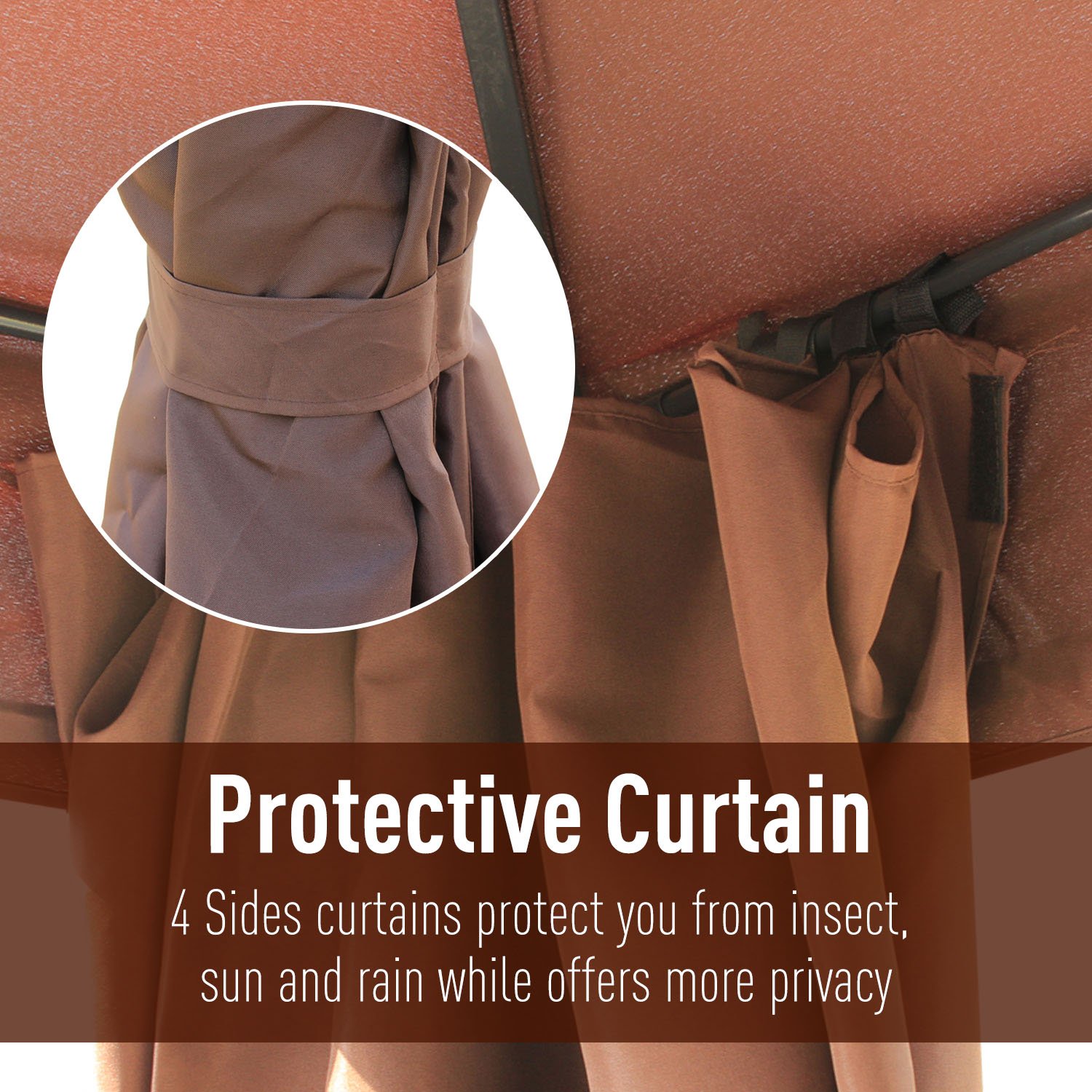 • 【Gazebo】Outsunny 10x13ft Garden Gazebo Double-Tiered with Curtain Outdoor Shelter Backyard Canopy Coffee