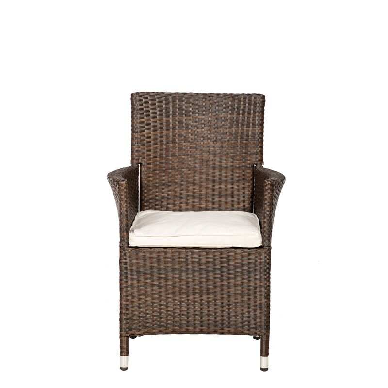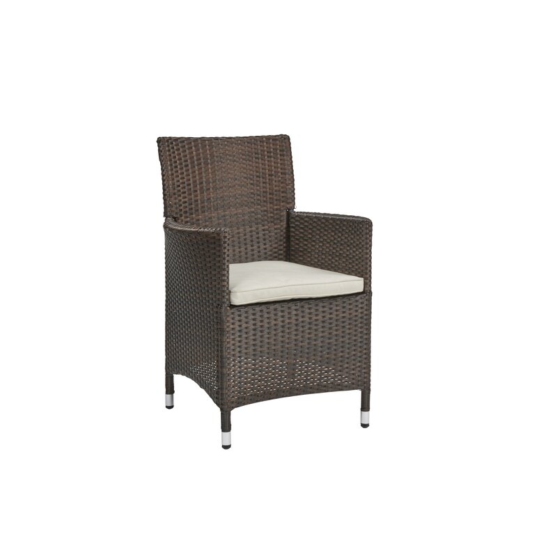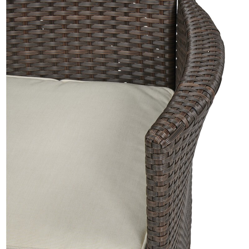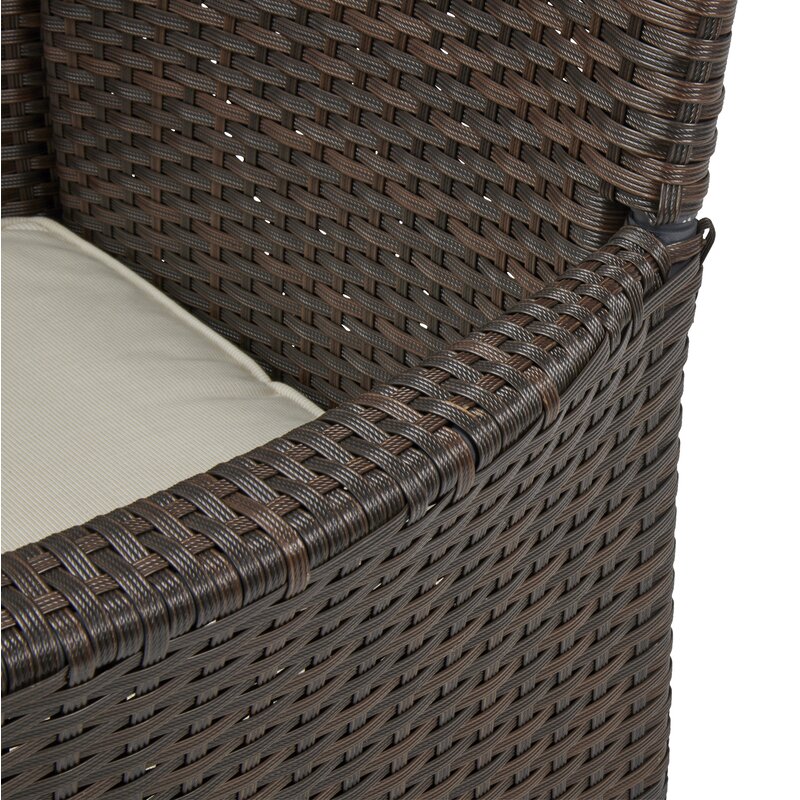 Host dinner parties in the great outdoors with this set, which includes six chairs and a table topped with tempered glass and a parasol hole (parasol not included). The chairs have removable cushions for extra comfort and the polyethylene wicker is weather-resistant, making the set suitable for use all year round. Assembly is required.