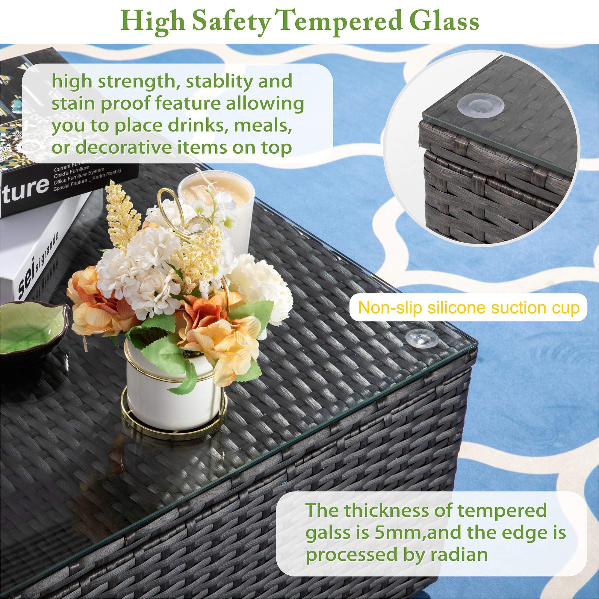 - Please do not expose the set to the burning sun and cover the wicker furniture when not in use to ensure a long-lasting product life