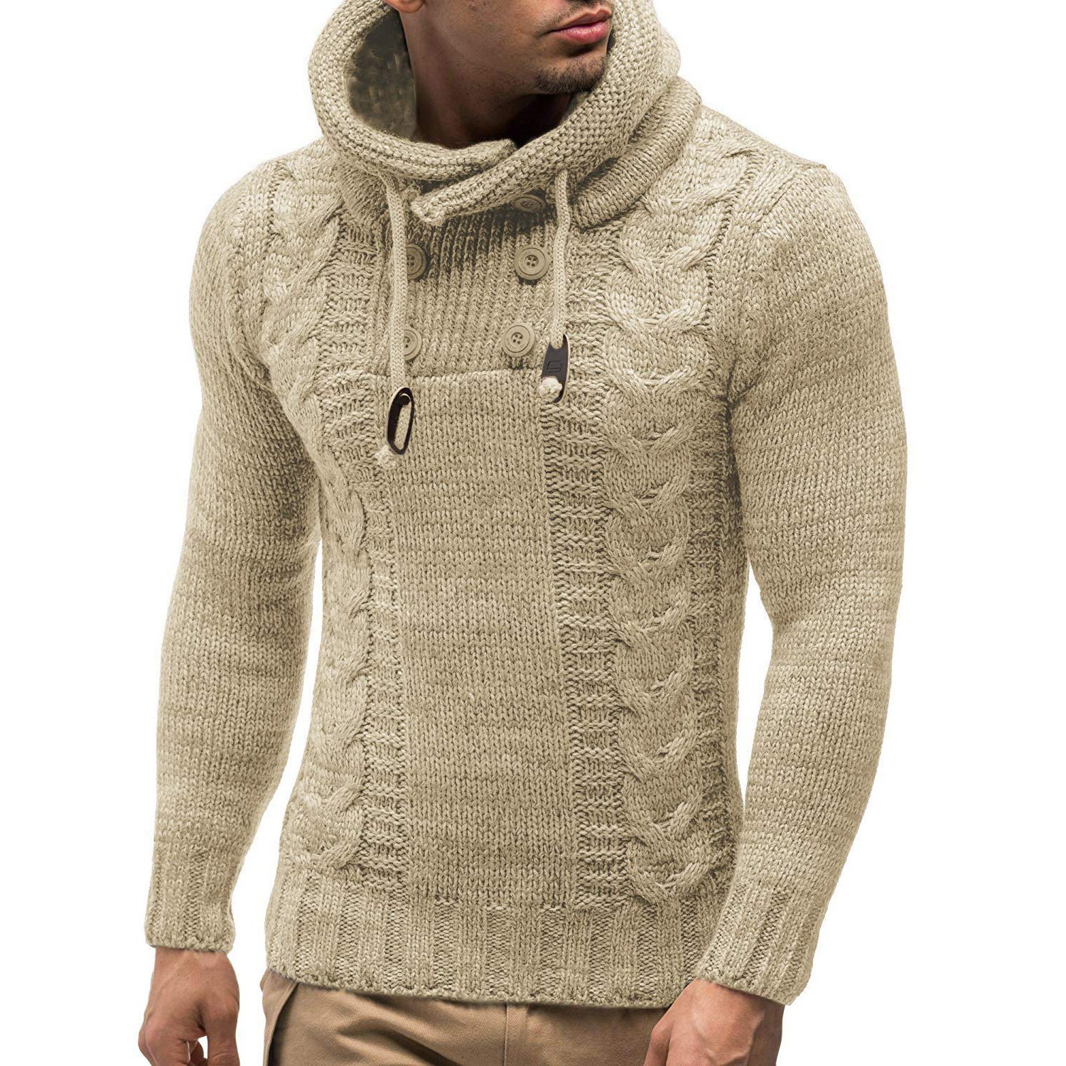 Men's Knitted Cotton Pullover Hoodie Long Sleeve Turtleneck Sweater5