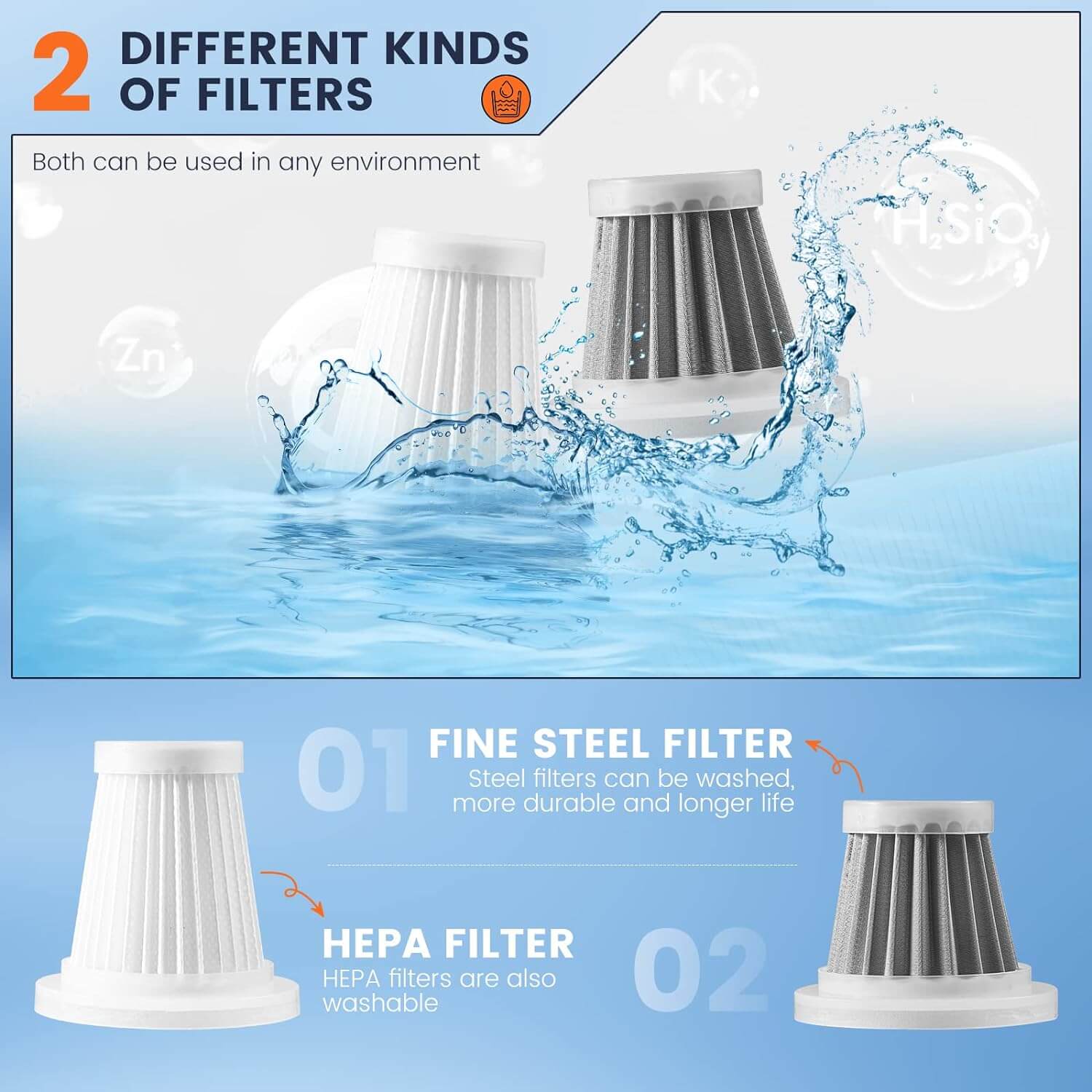 Take the filter out of the dust cup of the Cordless handheld vacuum, wash it with water and dry it for the second time.The filter is safe to be soaked and washed.