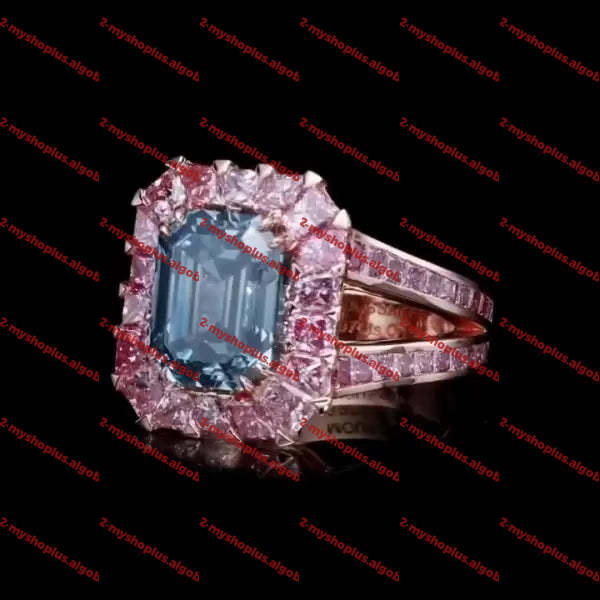Crafted from sterling silver. Emerald-cut blue sapphire as the enter stone and encircled by pink sapphire halo. Harmonious color scheme to enhance the luster and unique of the diamond ring. Ideal for wedding ringengagement ringpromise ring or daily wearing.