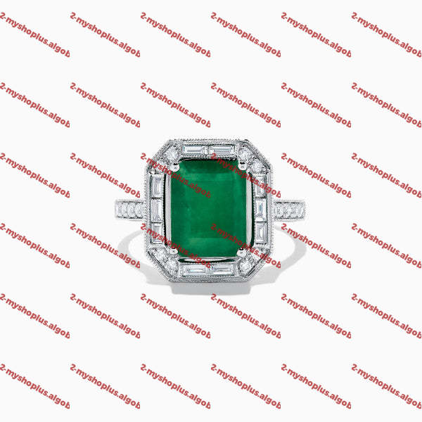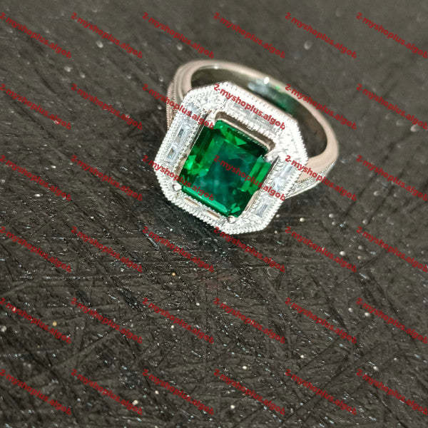 • 5.2ct Art Deco Halo Emerald Cut Engagement Ring