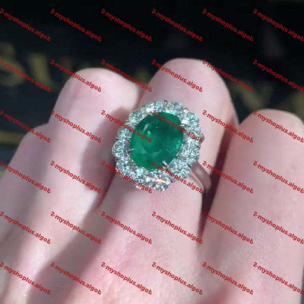This glamorous halo ring features an oval-shaped emerald green center stone encircled by a sparkling halo of white gems for a captivating nature-inspired look. Perfectly serve as your wedding ring engagement ring promise ring and cocktail ring. A must for fashion girls and women.