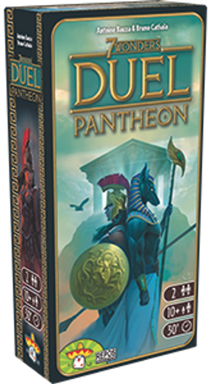 A pantheon from several civilizations — including Greek, Egyptian, and Middle-Eastern — gets added to 7 Wonders Duel in 7 Wonders Duel: Pantheon, with each god having its own power to help you or hinder your opponent.