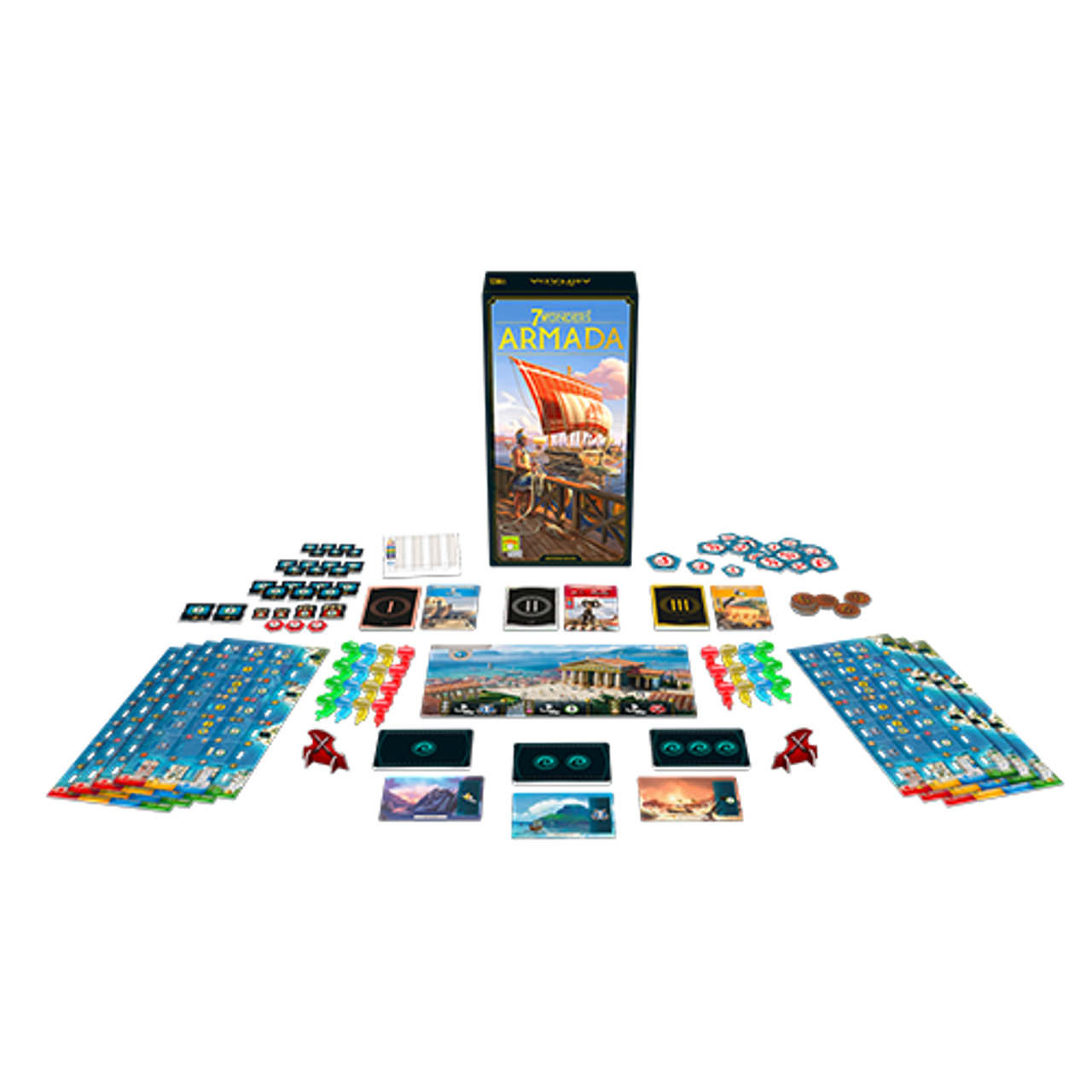 The horizon is now within reach: your armada is waiting for you to go conquer the seas! On board your ships, discover distant isles, trade with distant cities, and equip your fleets to take part in the upcoming naval warfare... In addition to a whole new Wonder, this expansion allows you to expand your interactions with two new types of cards: Armada and Isle cards. Navigators, explorers, shipowners, and pirates will give new depth to your games.