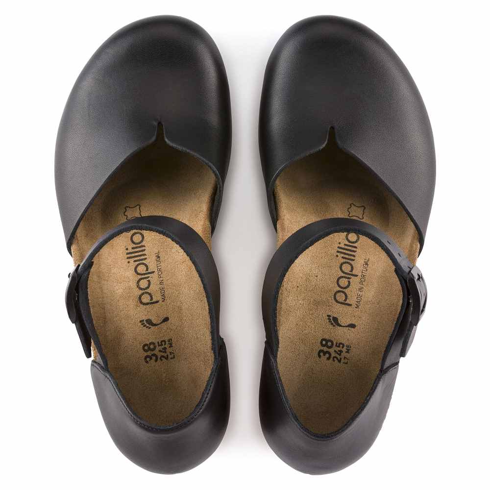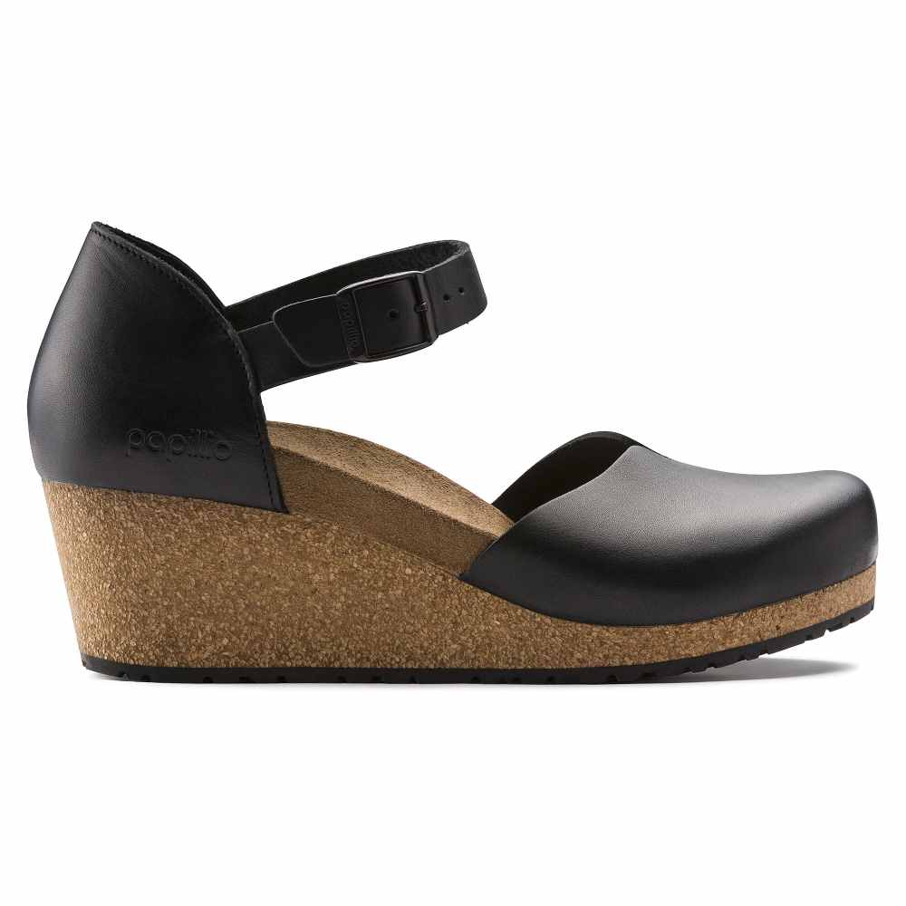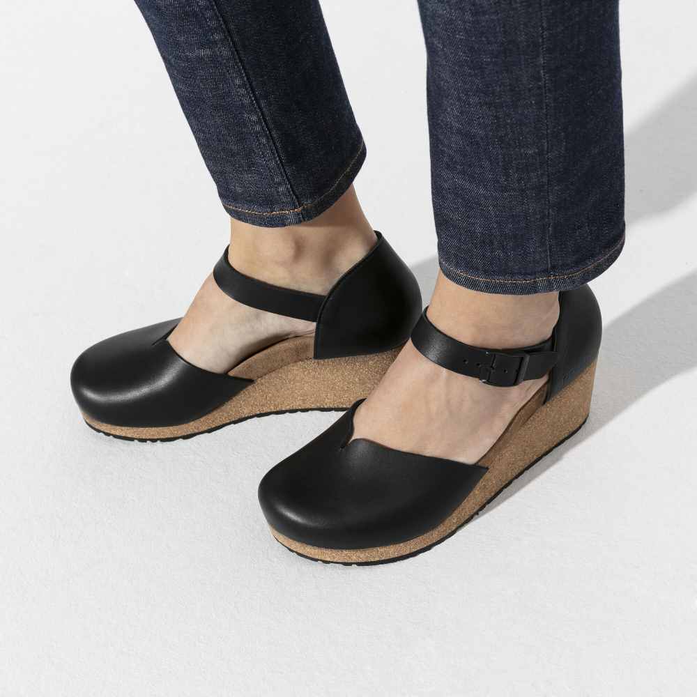 The Mary is a closed-toe wedge from Papillio. Featuring a comfortable, lightweight footbed, and a subtle v-notch on the instep for added ease while walking. The delicate circular buckles are an elegant eye-catcher to dress up any outfit. The upper is made from high-quality, soft natural leather.