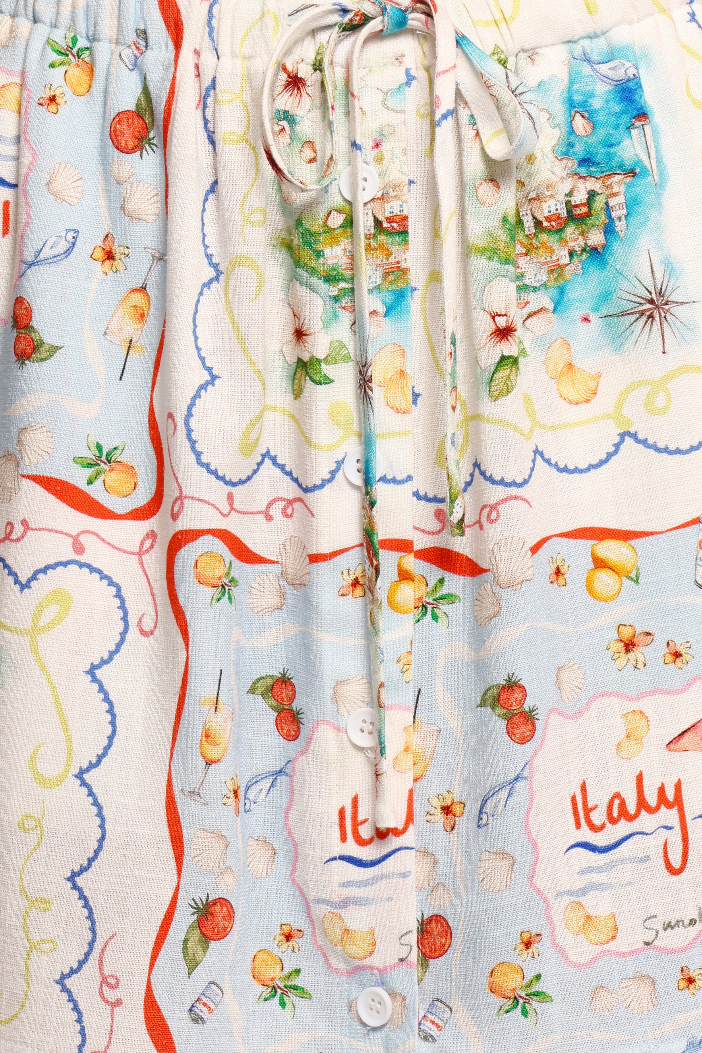 DETAILS Step into sun-kissed days with the Abella Mini Skirt in Lucia. This skirt is your go-to for effortless style, featuring an easy-to-wear mini length and an elasticised waist for all-day comfort. The drawstring waist tie lets you personalise your fit, while the front button closure adds a touch of vintage charm.