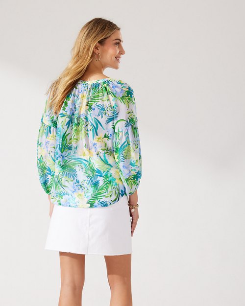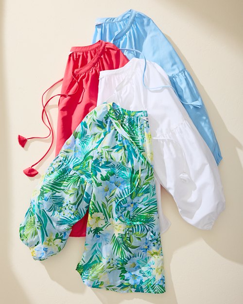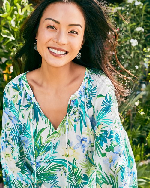 Our breezy Agua Amara tops weave cotton and silk voile into sheer elegance. Feel and look your best with soft fabrics and botanical designs that put you in a vacation state of mind.
