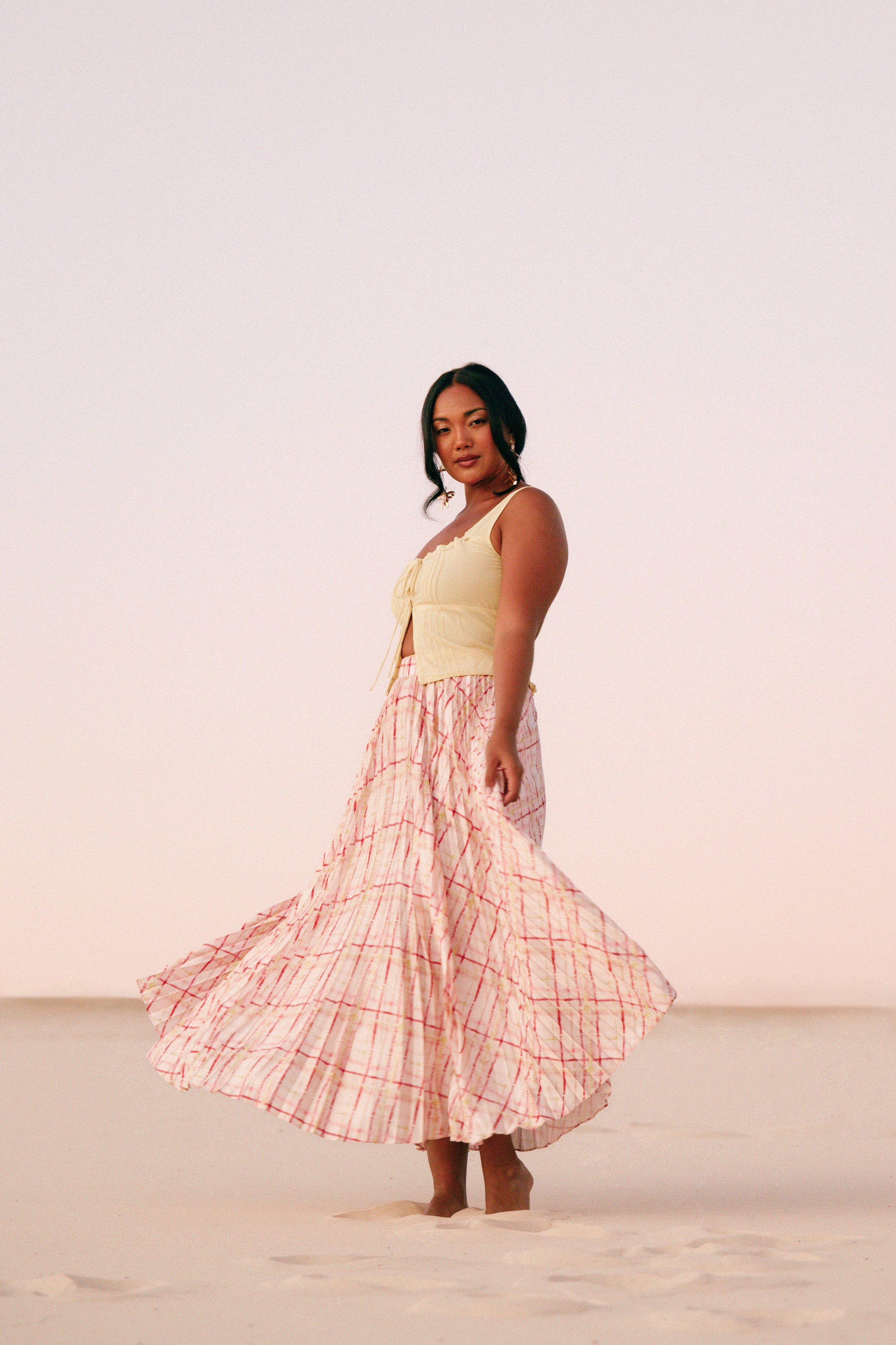 DETAILS Let summer days be full of brightness with this cropped length top! The fun, floral print is sure to add an eye-catching statement to your wardrobe. With a round neckline and bust tie detail, you'll be looking cute and comfortable in no time.