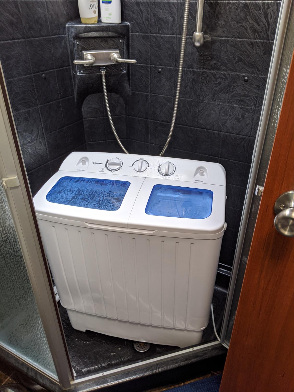 Answer:I put the washer in my standard bathtub, and use my shower head (it's the type with a hose) to fill the machine with water. Also having the machine in the tub, makes draining it easy and yes the machine is light enough to easily take it in and out of the tub, as needed