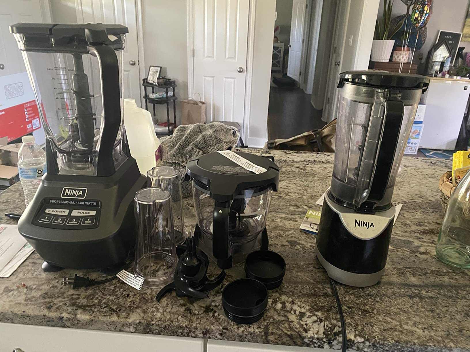 - Included Components: 1500-watt Motor Base, 72-oz. Total Crushing Pitcher, Instruction Book, Dough Blade, (2) 16-oz. Nutri Ninja Cups with To-Go-Lids, Inspiration Guide, 8 Cup Food Processor Bowl, Quick Start Guide