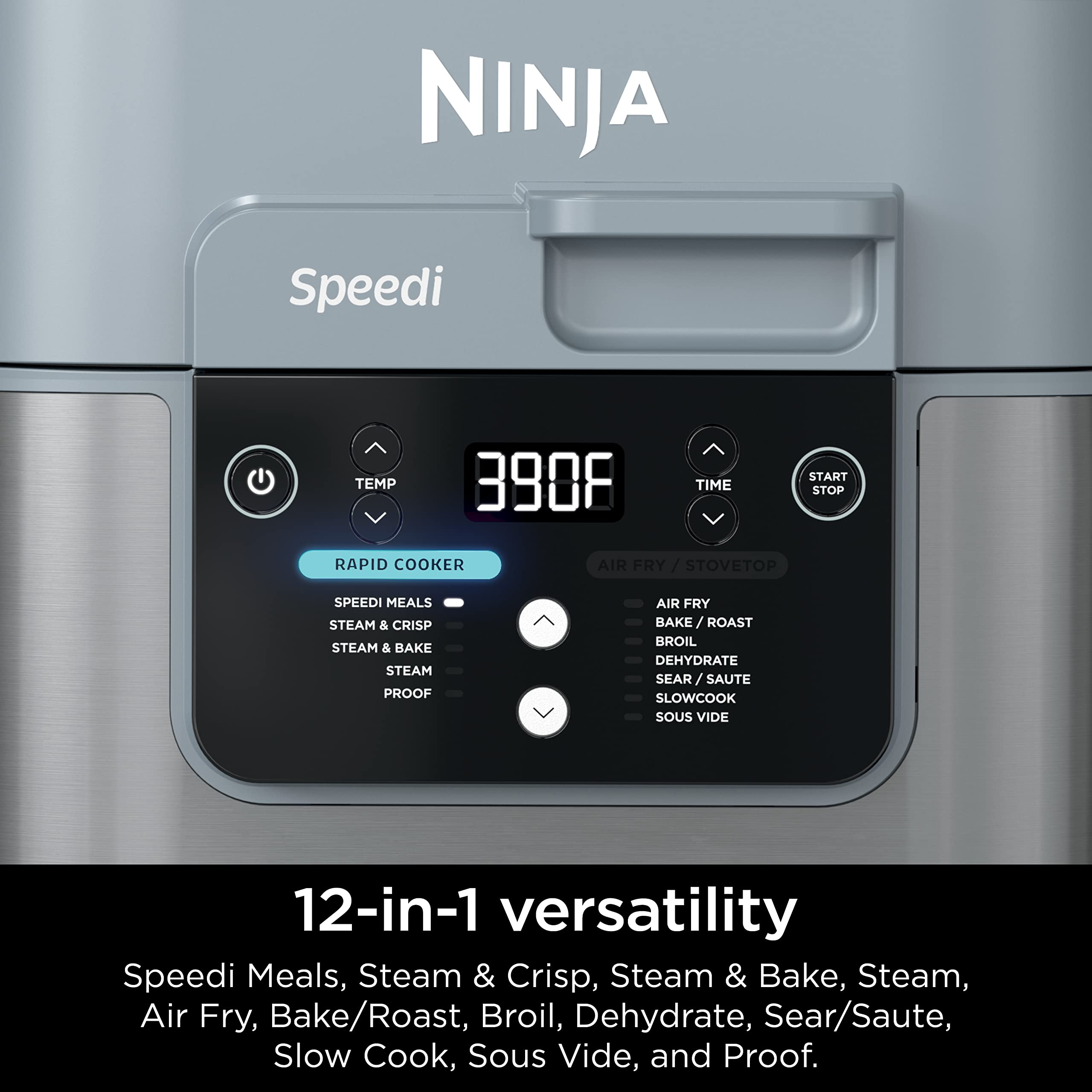 - 12-IN-1 FUNCTIONALITY: Choose from Speedi Meals, Steam & Crisp, Steam & Bake, Steam, or Proof in Rapid Cooker mode and unlock Air Fry, Bake/Roast, Air Broil, Dehydrate, Sear & Sauté, Slow Cook, and Sous Vide functions in Air Fry mode.