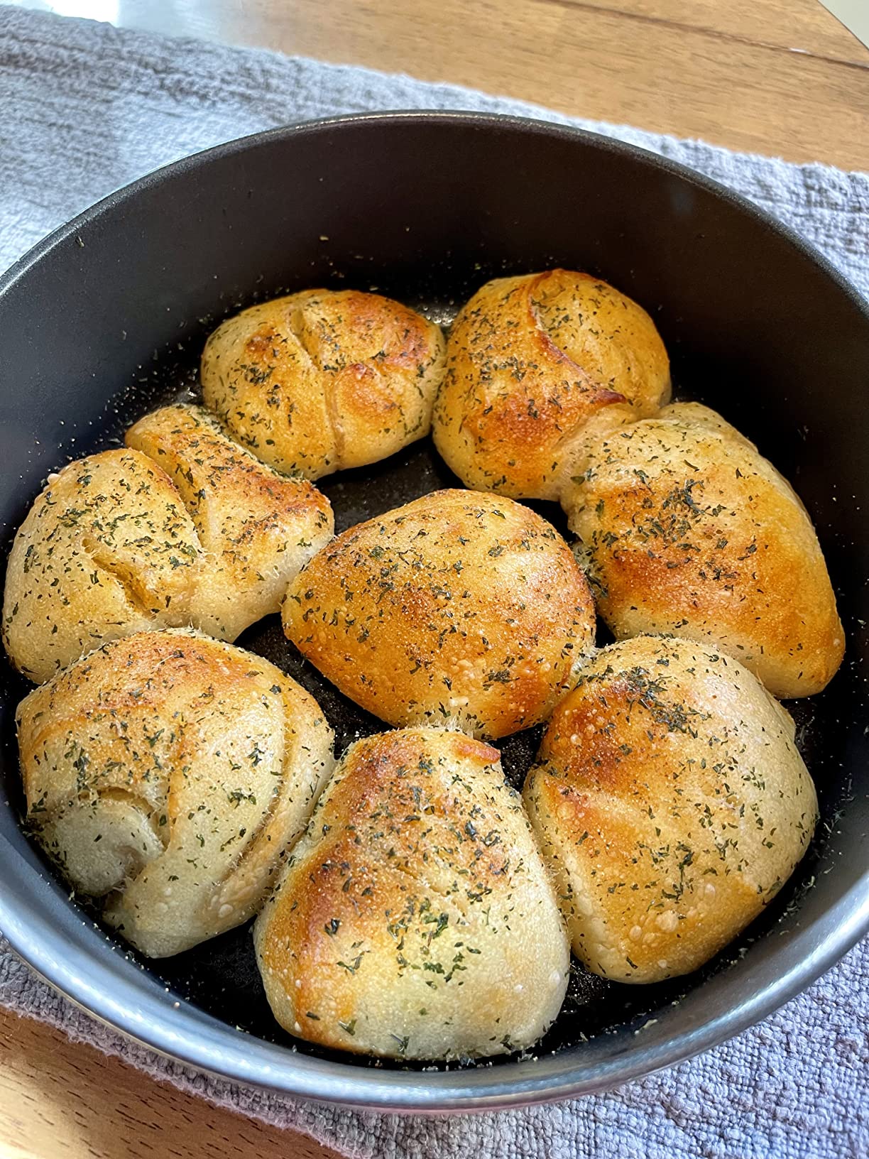 Answer:I use 390 deg. for 5 minutes and it works great.