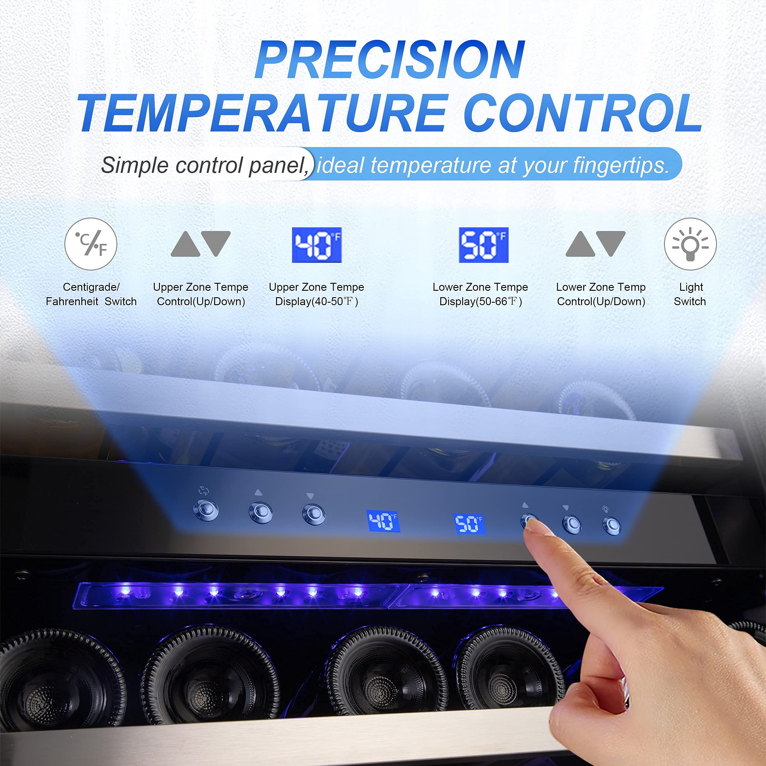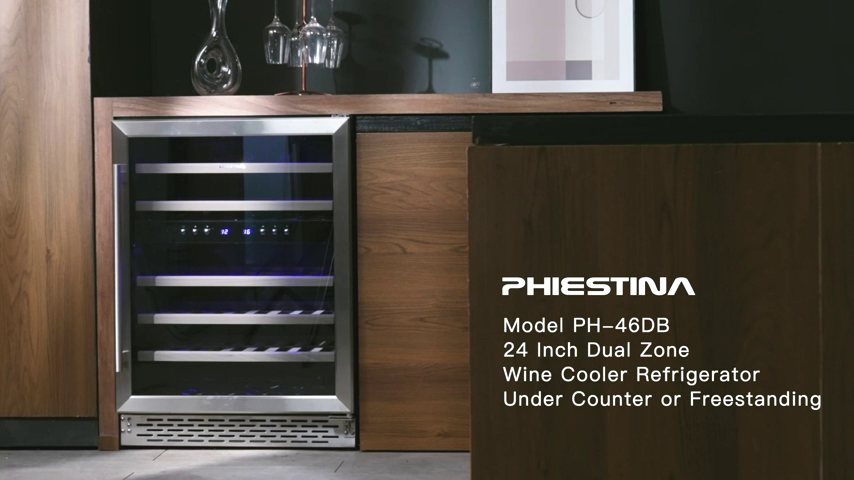 【Appliances】Phiestina 24 Inch Under Counter Wine Cooler - 46 Bottle Built-In Dual Zone Compressor Wine Refrigerator
