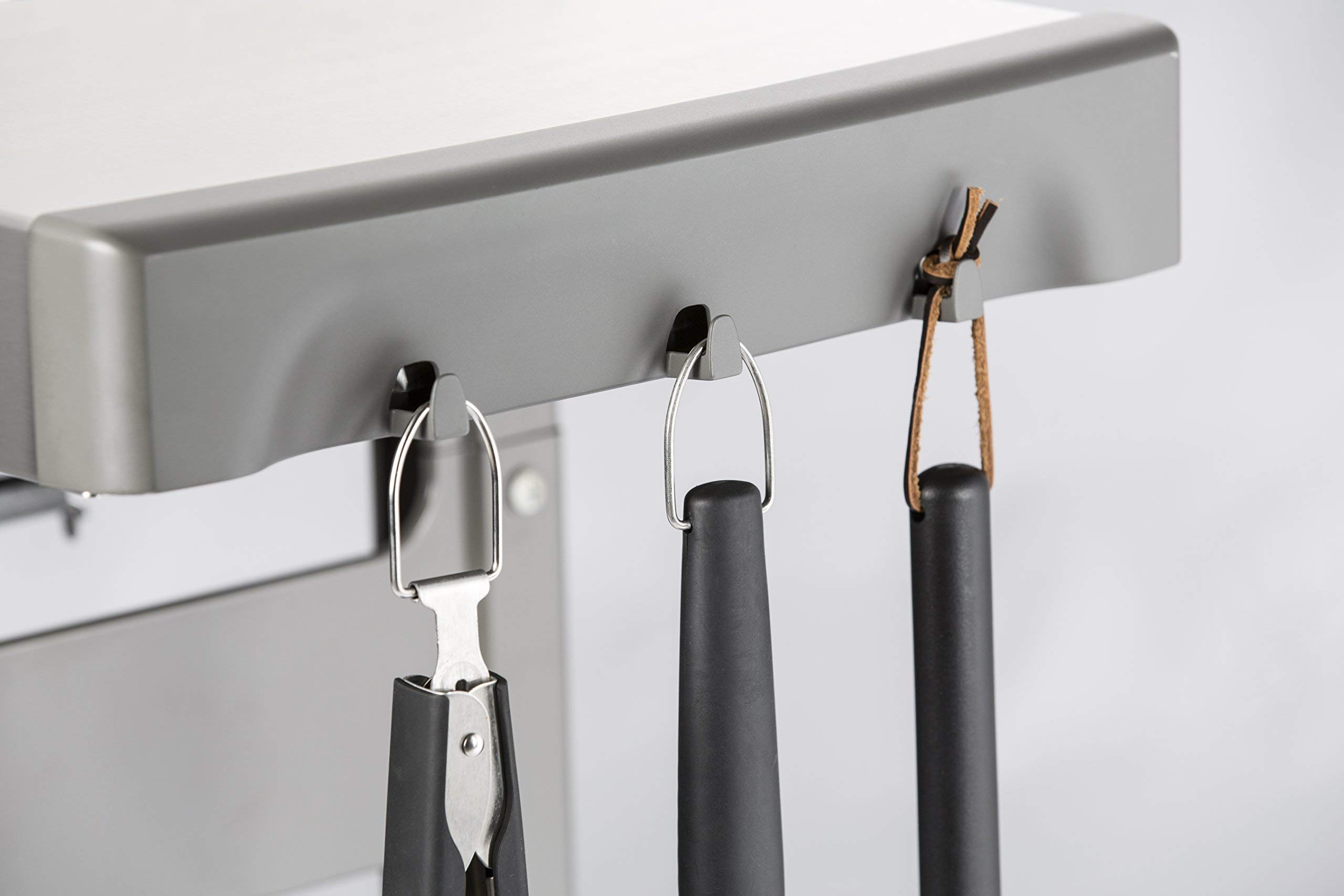 Side Tables with Integrated HooksUse the side tables to keep platters, seasonings, and tools within arm’s reach while the food is cooking. Hang your essential grilling tools on the hooks for easy access and organization of your backyard workspace. |