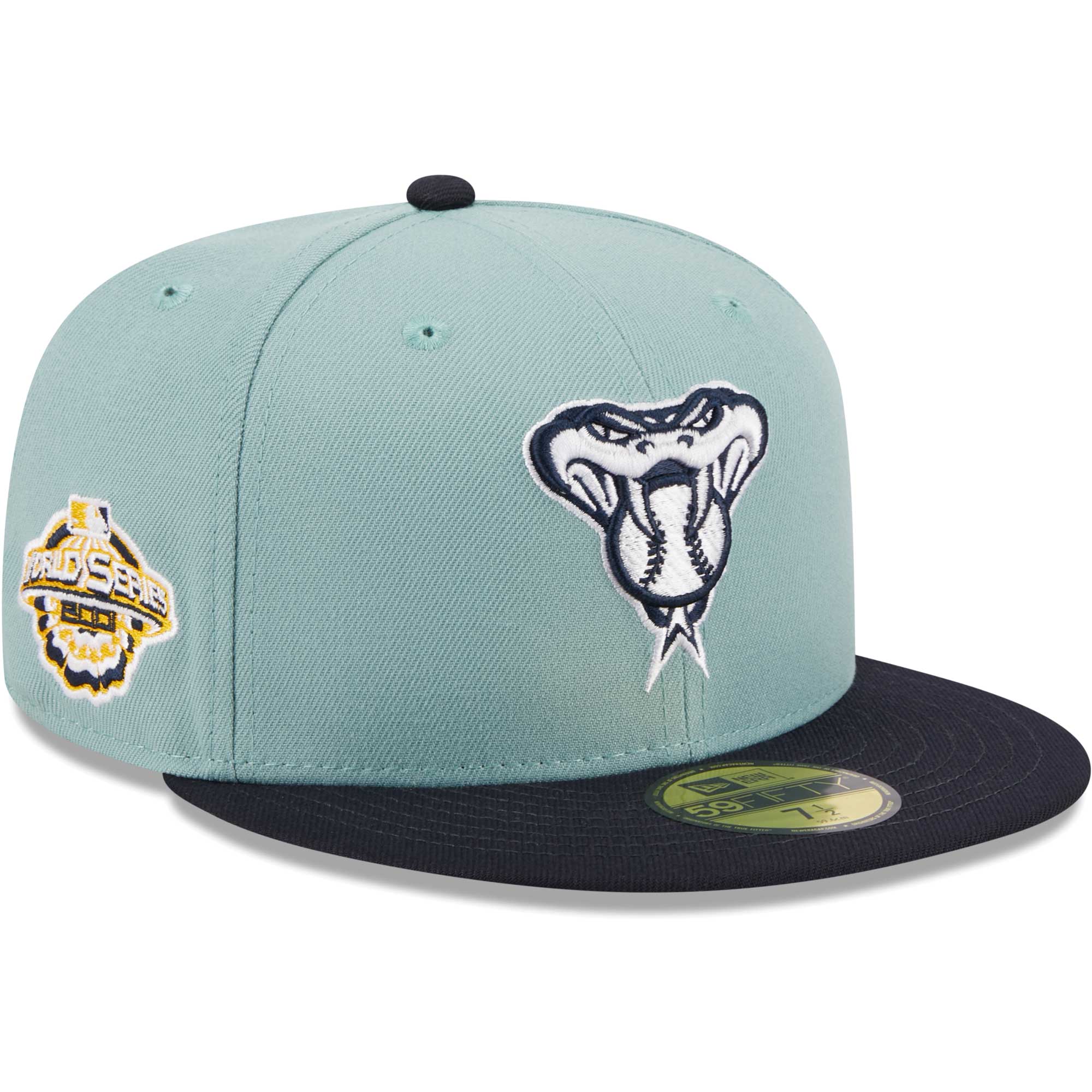 Top off any outfit with this striking Arizona Diamondbacks 59FIFTY hat from New Era. It features the team's logo on the front and a historic patch on the side set in a golden tone to harness the summer vibes. The high crown and flat bill give it an elevated look while the fitted design ensures a perfect fit with any Arizona Diamondbacks look.