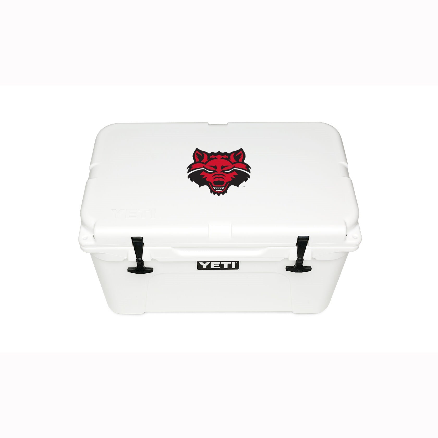 An officially licensed YETI Cooler lets everyone know that the Red Wolves have arrived. Show off the scarlet and black in the Roadie 24, Tundra 45, Tundra 65, and Tundra Haul Hard Coolers, as well as the YETI TANK 85 Ice Bucket.