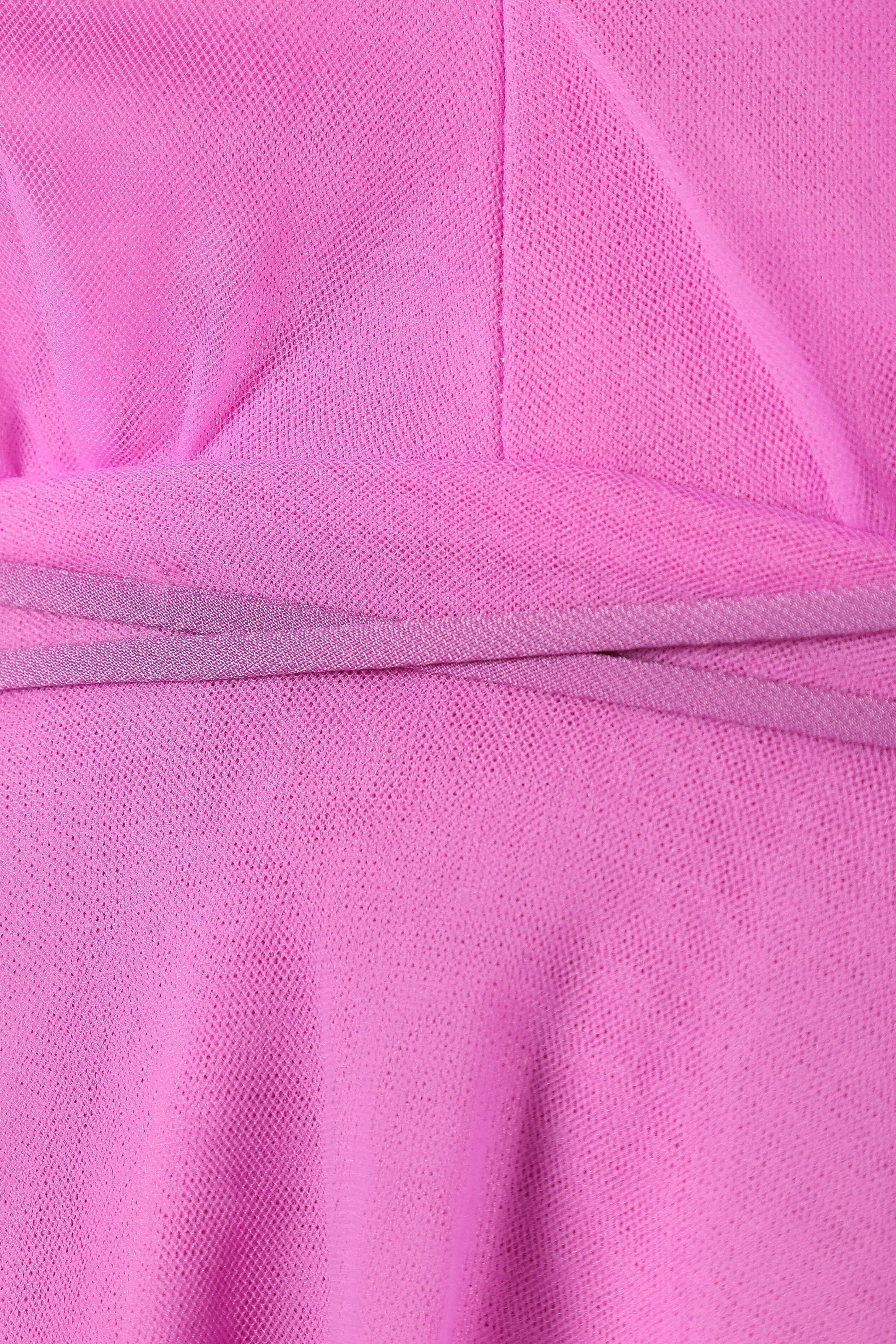 | DETAILS This mini-length dress frames the shoulder line beautifully with its halter neckline and delicate tie closure. Featuring a back tie close that adds an element of surprise and allows for a customised fit. The romantic tulle overlay brings a soft, dreamy quality to the silhouette, infusing the dress with an ethereal charm.
