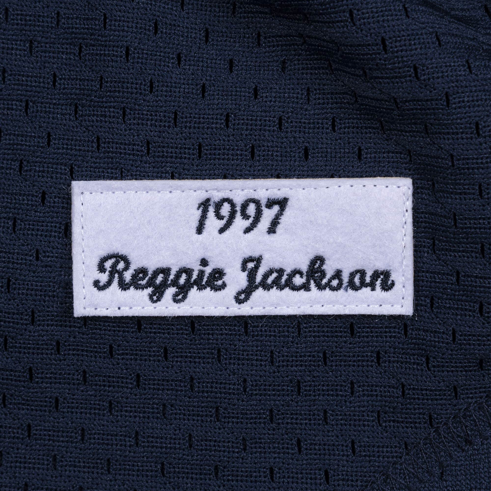 Authentic BP Jersey New York Yankees 1997 Reggie Jackson. 100% polyester mesh. Twill or sreenprinted logo name and numbers. Button front closure. Woven league jocktag at lower left hem. Player name & year felt ID tag sewn into the back hem. . .