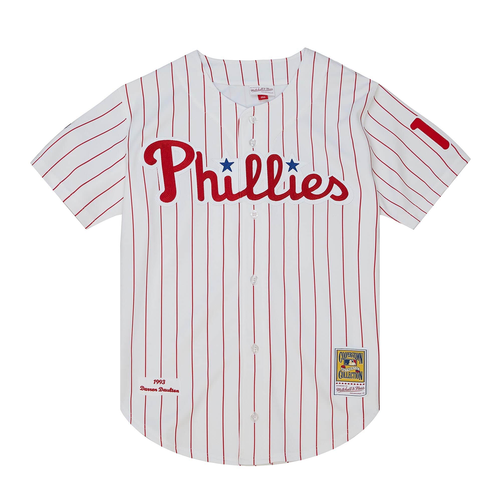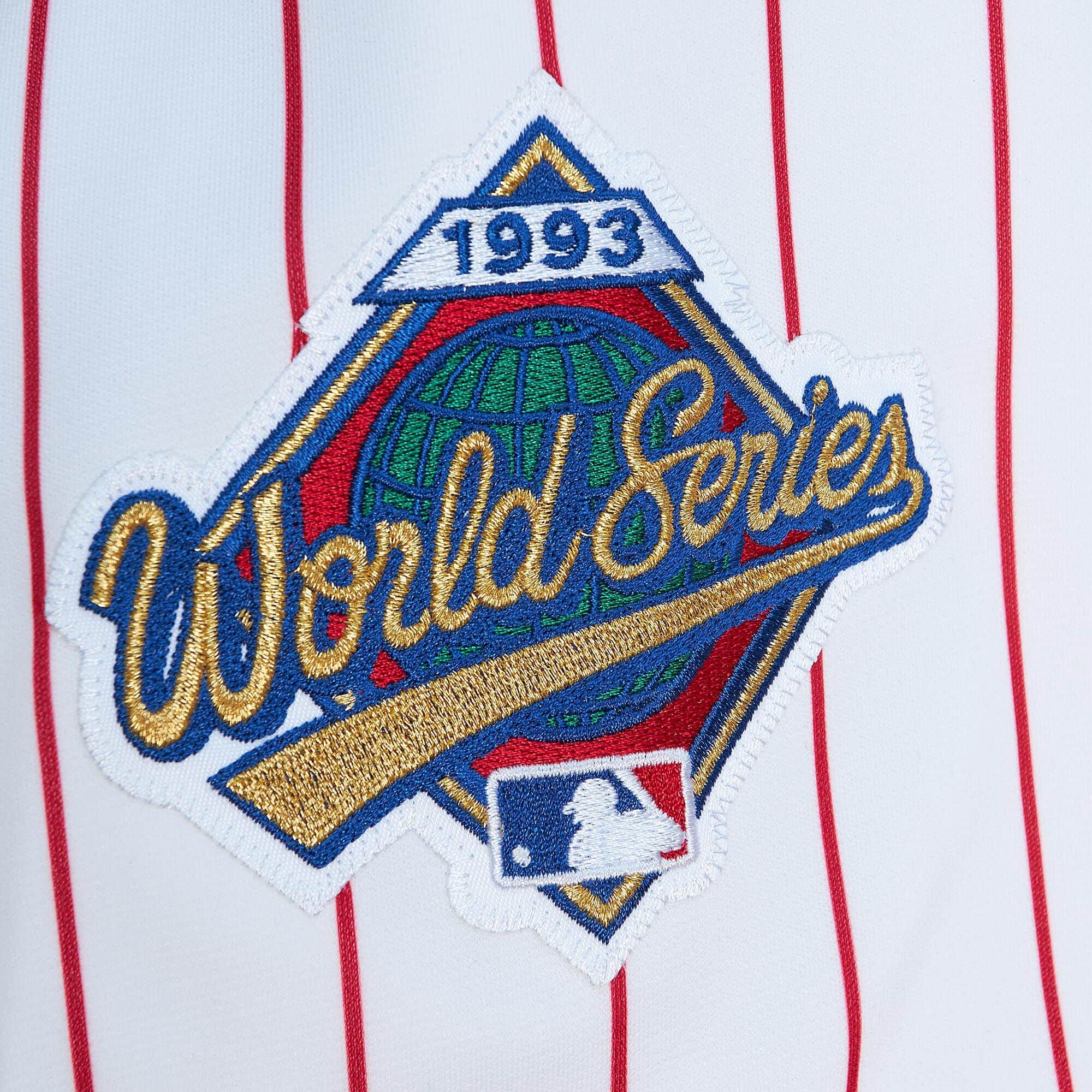 The 1993 Philadelphia Phillies uniform features an embroidered twill World Series patch on the sleeve and celebrates the late great Darren Daulton. 100% Polyester.