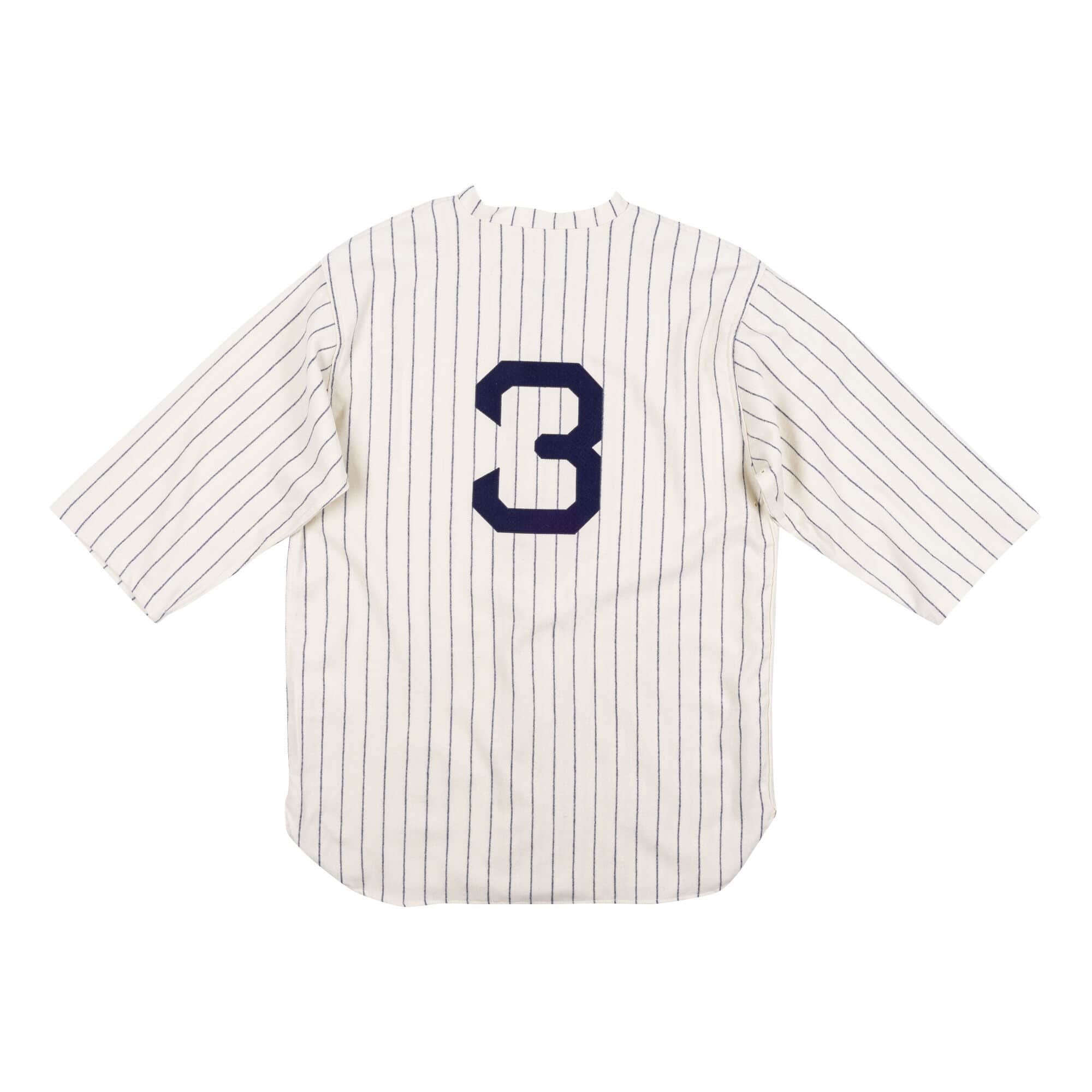 Authentic Jersey New York Yankees Home 1929 Babe Ruth. 100% wool body. One color twill logo and number. 3/4 sleeve. Direct embroidered name/year ID. Sewn-on woven Authentic Collection tag. Button front closure.
