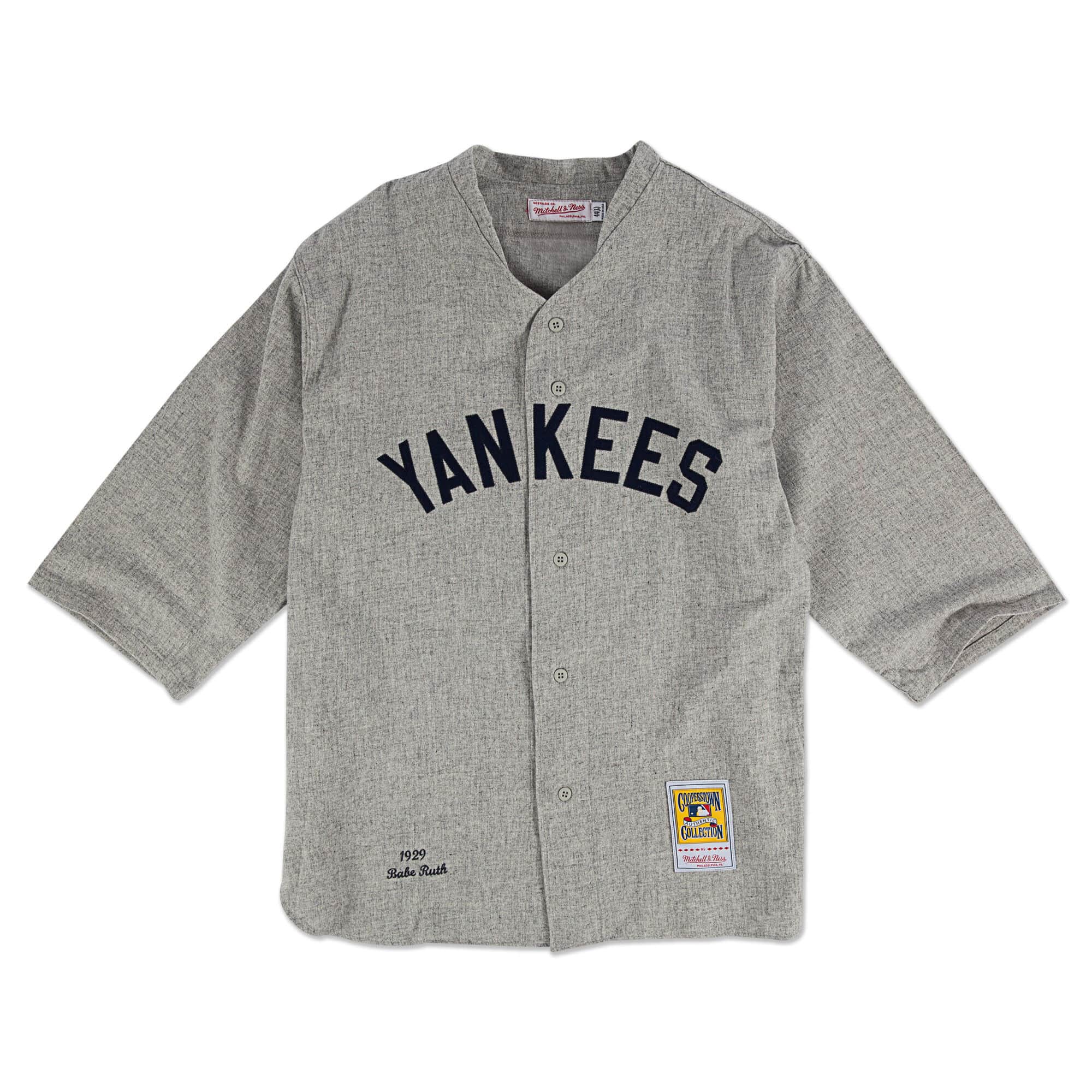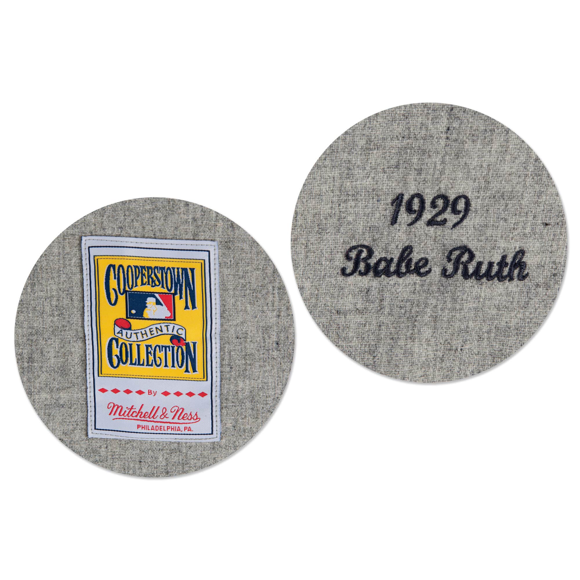 Authentic Jersey New York Yankees Road 1929 Babe Ruth. 100% wool body. One color twill logo and number. 3/4 sleeve. Direct embroidered name/year ID. Sewn-on woven Authentic Collection tag. Button front closure.