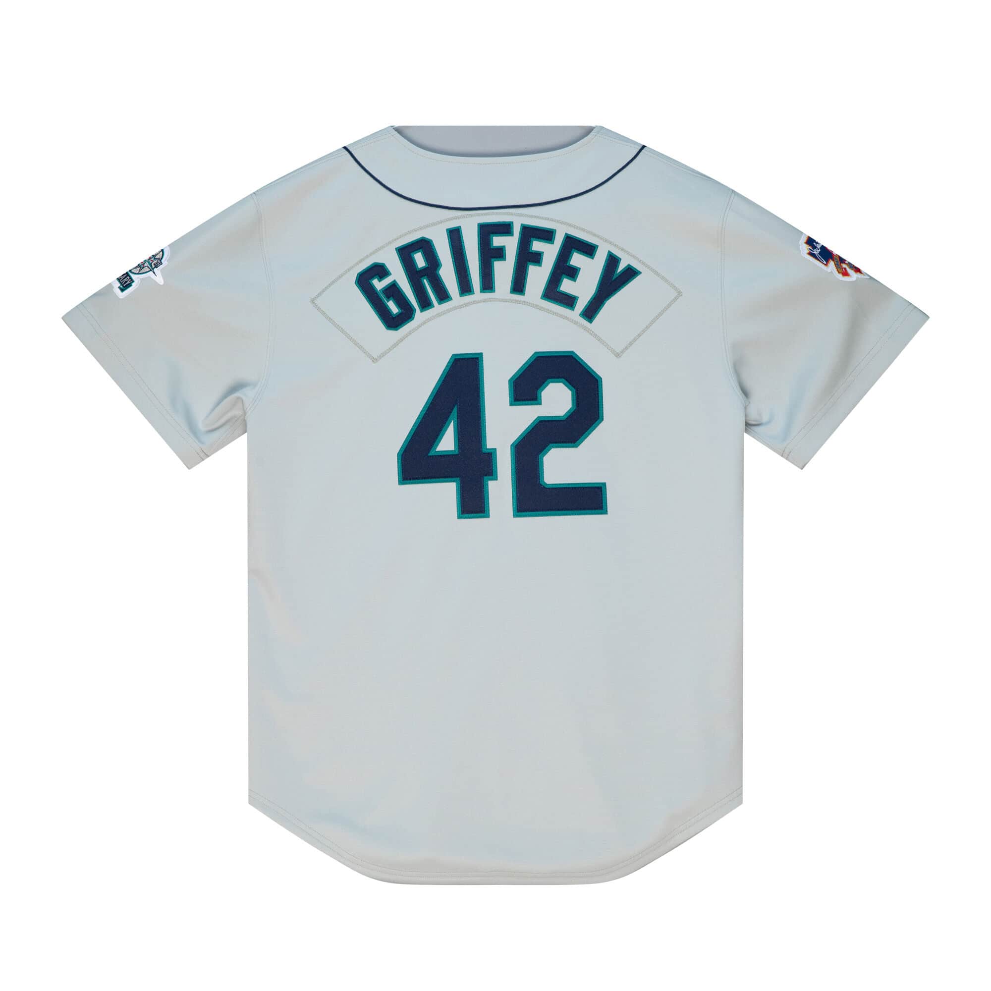 Authentic Ken Griffey Jr Seattle Mariners Home 1997 Jersey. 100% Polyester double knit body. Embroidered twill front logo. Twill name and numbers. Cooperstown Collection woven jocktag. Self fabric year ID patch.