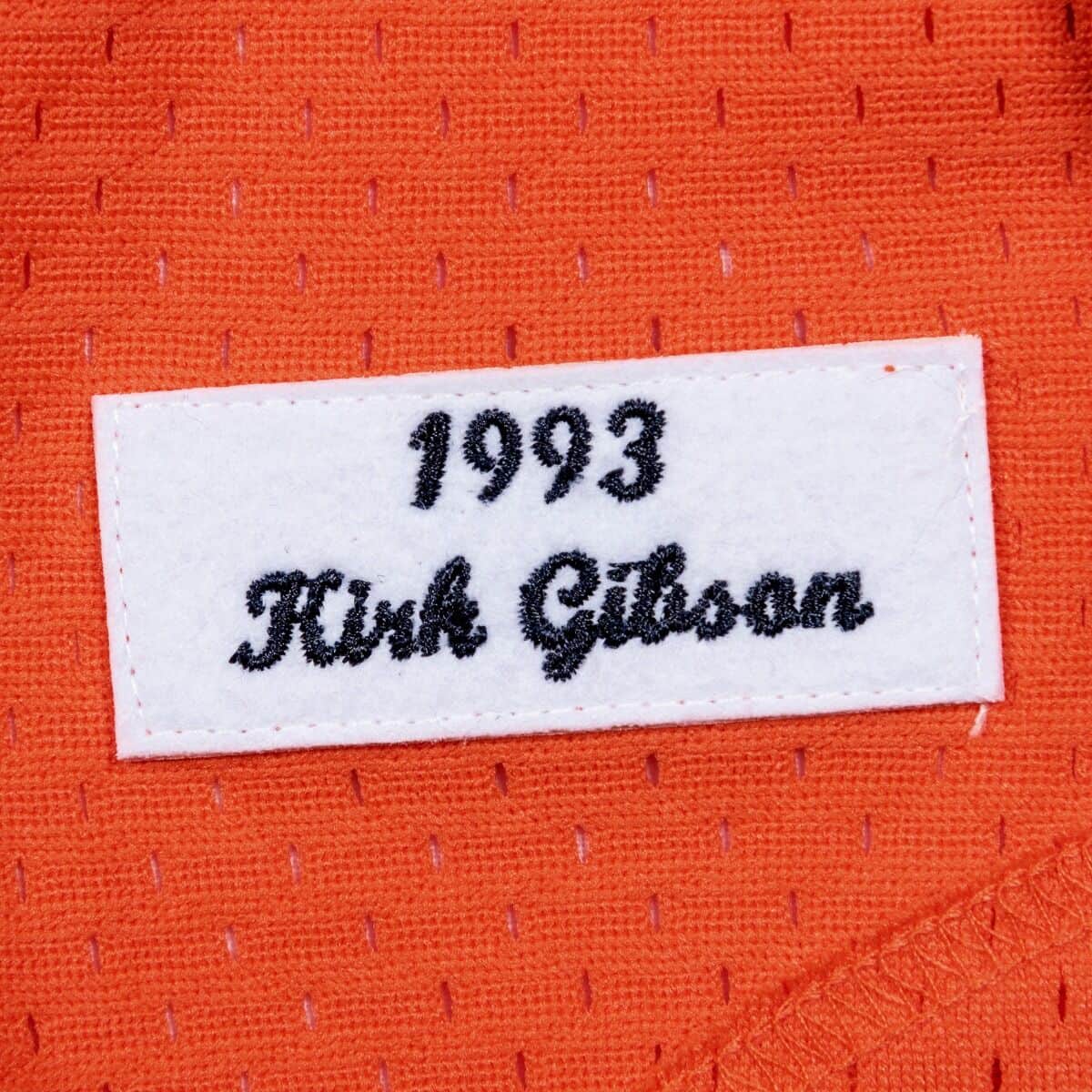 Authentic Kirk Gibson Detroit Tigers 1993 Button Front Jersey. 100% Poly mesh body; layered twill; woven cooperstown jocktag; self fabric name/ yr player ID label button placket; knit rib sleeves and neck.