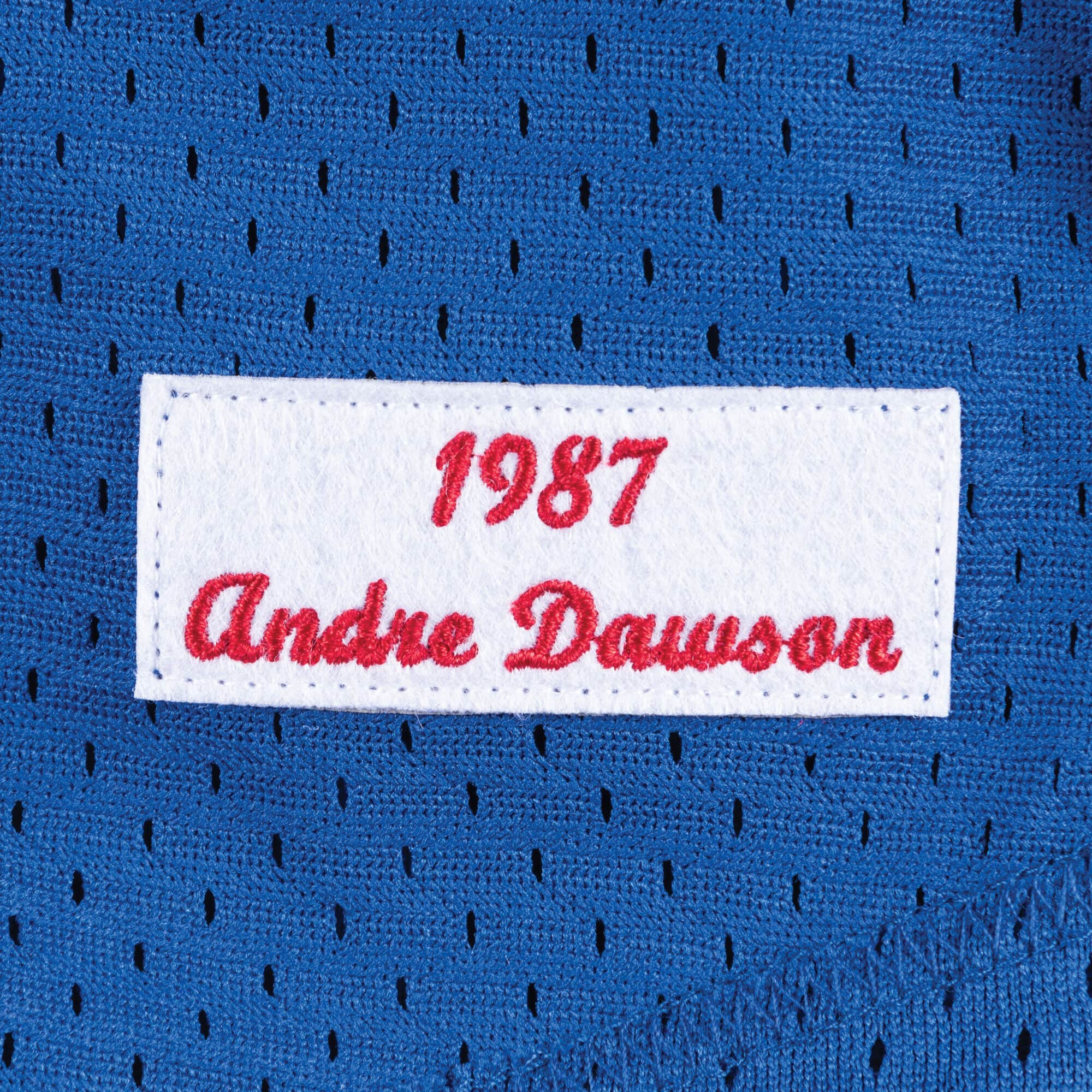 Authentic Mesh BP Jersey Chicago Cubs 1987 Andre Dawson. 100% polyester lightweight mesh. Twill or sreenprinted logo name and numbers. V-neck. Woven league jocktag at lower left hem. Player name & year felt ID tag sewn into the back hem.