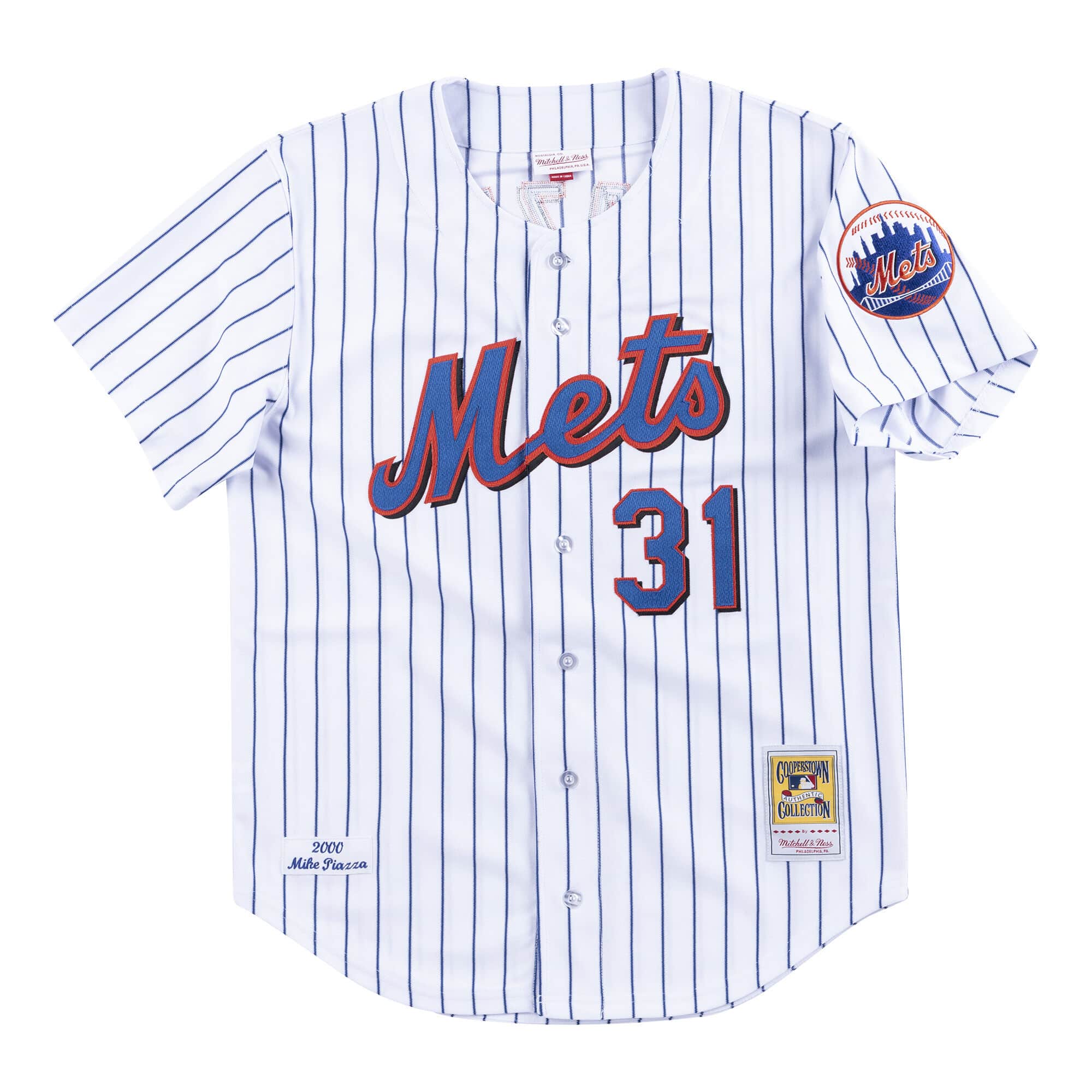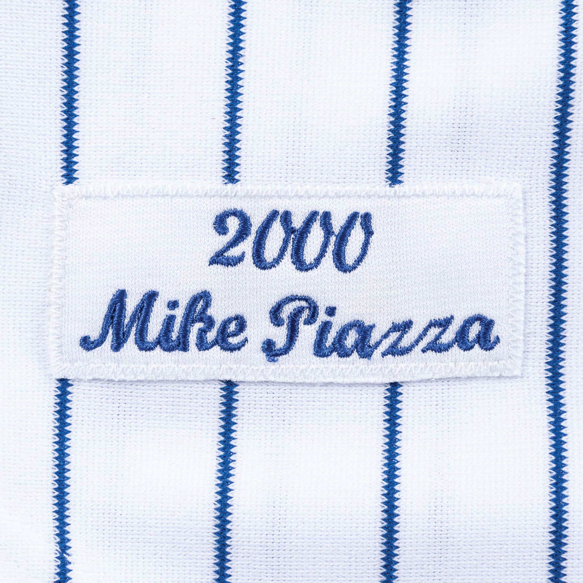 Authentic Mike Piazza New York Mets Home 2000 Jersey. 100% Polyester double knit body. Embroidered twill front logo. Twill name and numbers. Cooperstown Collection woven jocktag. Self fabric year ID patch.