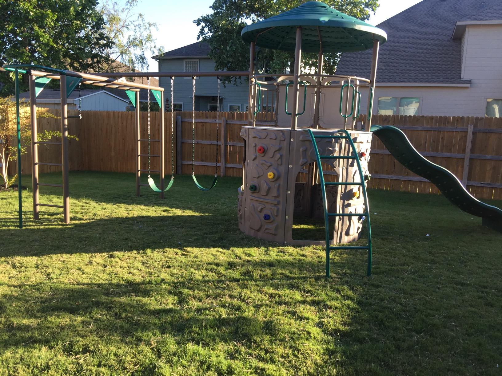- Playset footprint – 15’ 3" W x 10’ 9" D x 8’ 10" H | Recommended safety zone – 33’ 3” L x 32’ 5” W | Swings & Slide Weight Capacity – 150 lbs. | Platform Weight Capacity – 600 lbs. | For children between 3-12 years