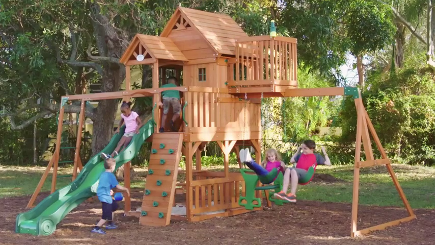 Customer Favorite Outdoor Swing Set: Your kids will have fun playing backyard games on the Skyfort swing set. Nicely equipped with multiple playhouse accessories and features to keep your children entertained for hours.