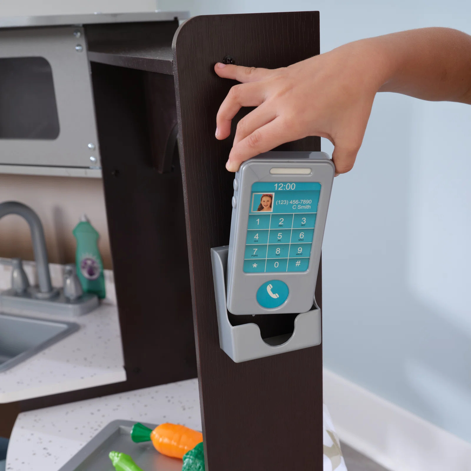 Our KidKraft Ultimate Corner Play Kitchen Set with Lights and Sounds is loaded with fun interactive features to engage your little chefs and keep them cooking. The stovetop burners and ice maker both feature lights and sounds, oven knobs turn and click, and appliance doors really open and close. Functional shelving and cabinets with doors that open and close provide plenty of convenient storage for any KidKraft kitchen accessories. With so much to explore, kids will feel like they're cooking just like Mom and Dad!