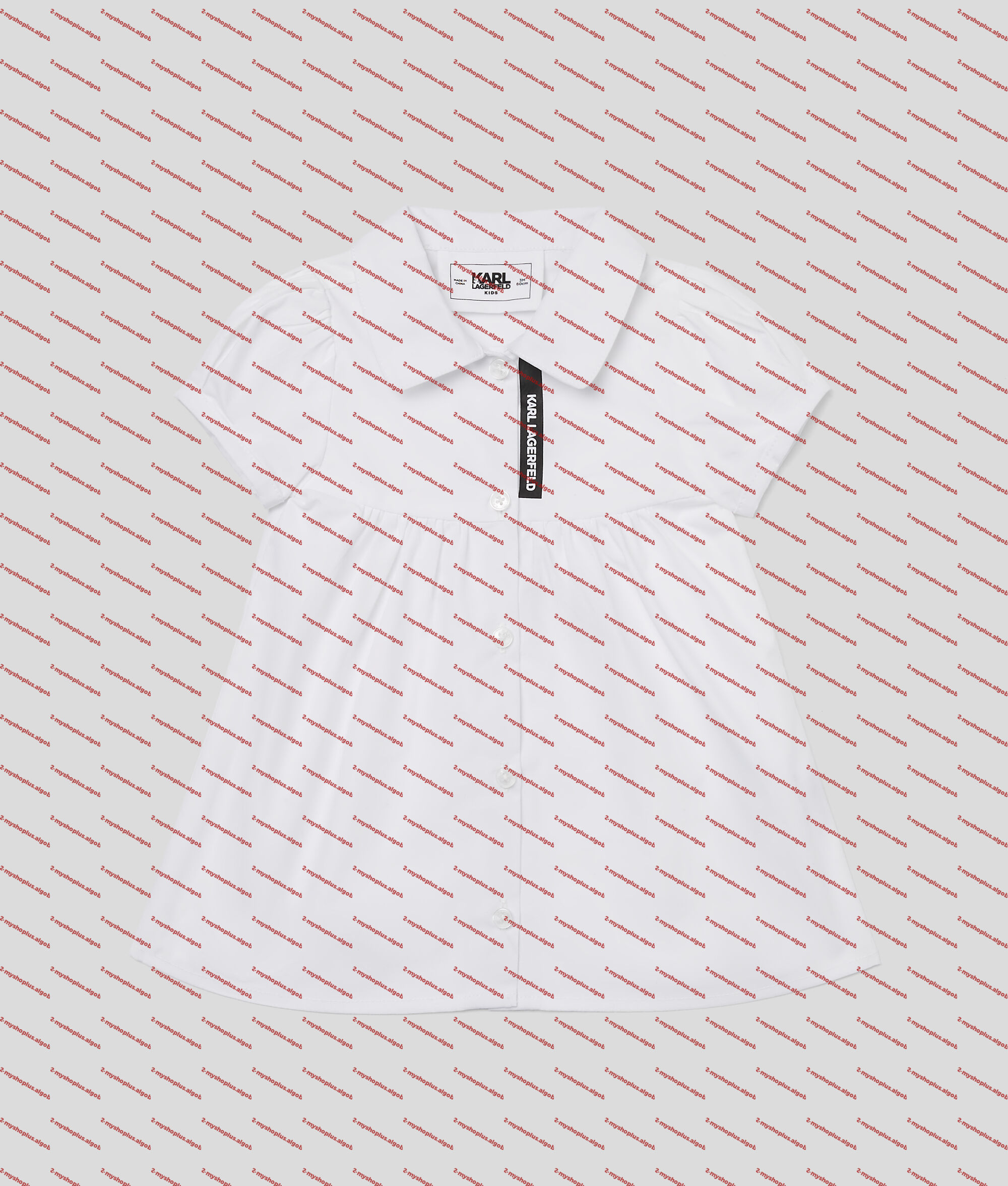 La première robe-chemise de bébé est confectionnée en popeline de coton brillant avec des manches bouffantes et une silhouette trapèze.