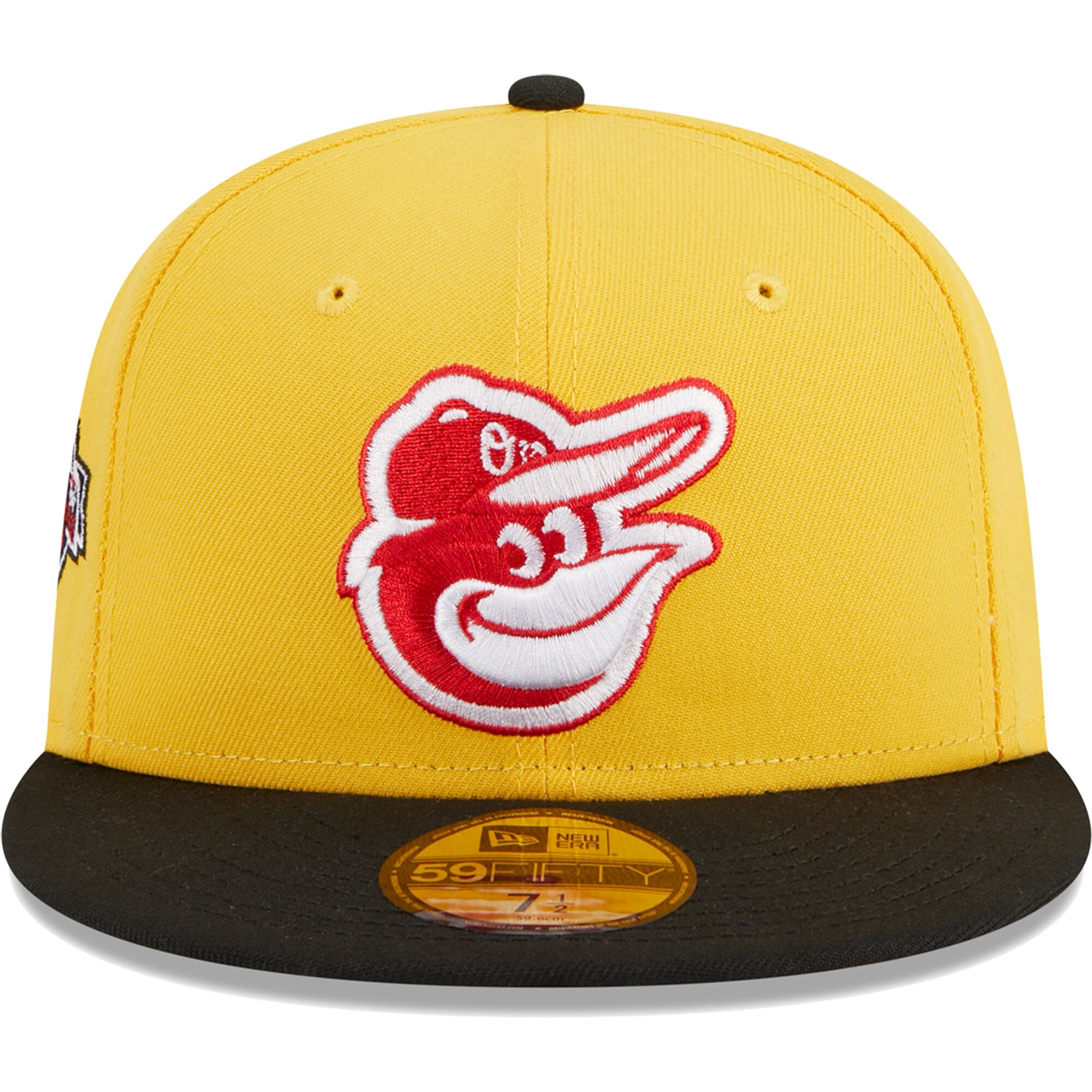Boost your collection of Baltimore Orioles gear by picking up this Grilled 59FIFTY fitted hat from New Era. It features the team's unmistakable logo embroidered on the front and a celebratory patch on the side. The unique colorway of this eye-catching cap is sure to make it your new number option for Baltimore Orioles game day.