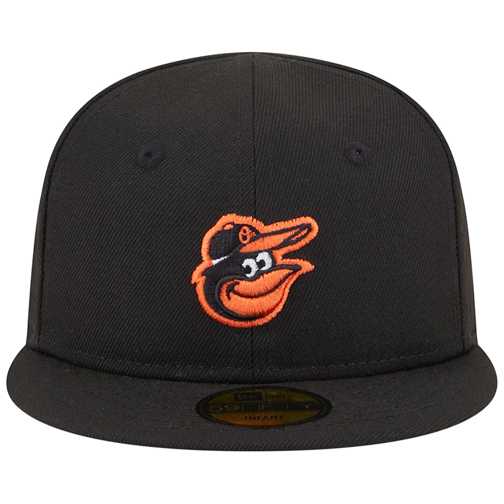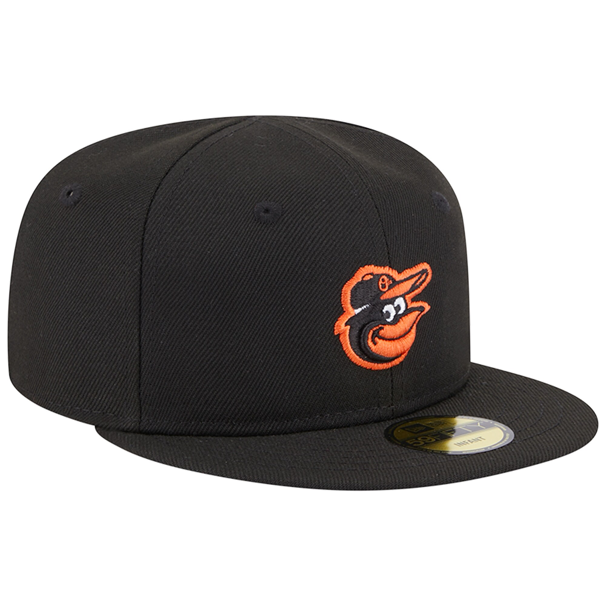 Gear the newest member of the Baltimore Orioles fan club in your household for the next game day with this My First 59FIFTY fitted hat from New Era. It features the unmistakable Baltimore Orioles graphic embroidered on the front panels and a structured design for a comfortable fit that lasts inning after inning. The flat bill also provides a classic look and the right amount of shade to keep your little one's noggin covered while they show their newfound favorites some love.
