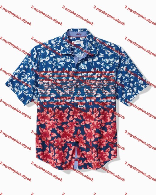 Show off your spirit for the red, white, and blue in this silky-soft camp shirt. With a bold print that's ready to party from barbecue to bar, this camp will be your go-to look for all your summer festivities.