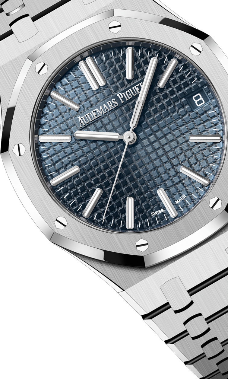 DIAL: “Black 50” dial with “Grande Tapisserie” pattern, white gold applied hour-markers and Royal Oak hands with luminescent coating.