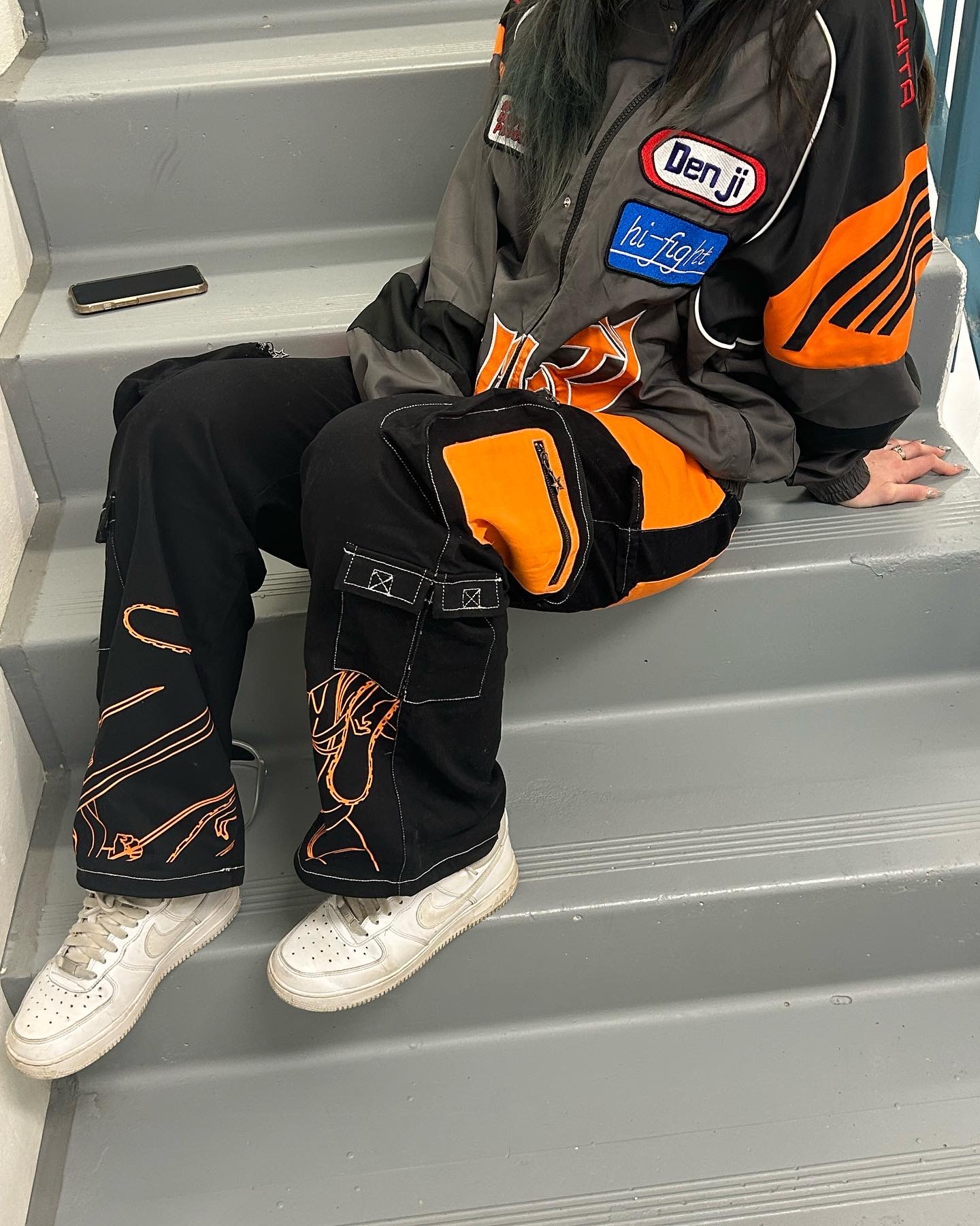 These pants are made of High-Quality Heavyweight Brushed Denim with zipper pockets on each side. Very comfortable and warm. It will keep the color bright for a long time. All Orders with this item include a Chainsaw Key Chain!