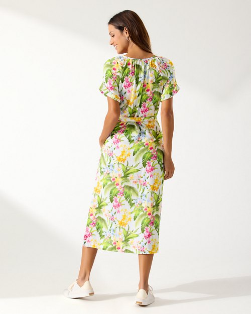 Ready for the season's <i>coolest</i> obsession Meet our softest, airiest gauze in spring-ready silhouettes. Effortlessly elegant and cool as an island breeze, this floral midi dress offers an easy one-and-done look—making it the perfect companion for your next sunshine-filled escape.