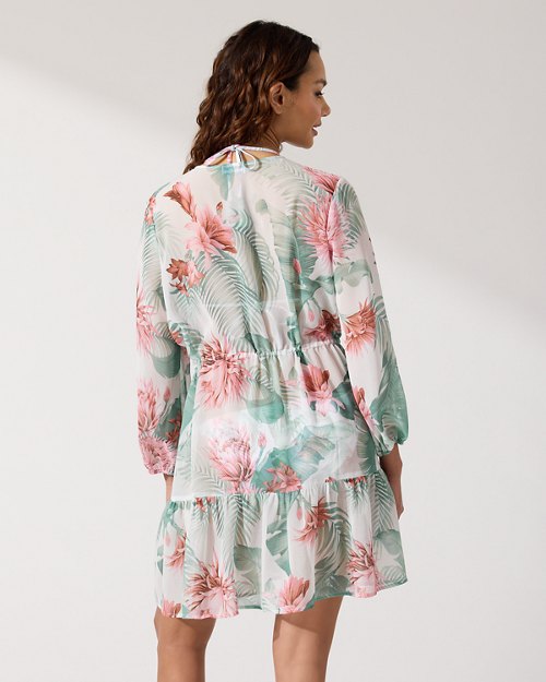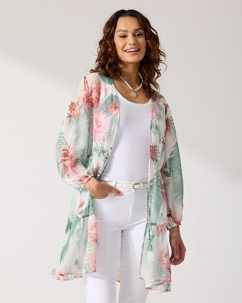 Escape to the tropics in this stunning open-front tunic. Designed with a lightweight fabric and flowy design, this universally flattering piece makes for the perfect poolside companion.