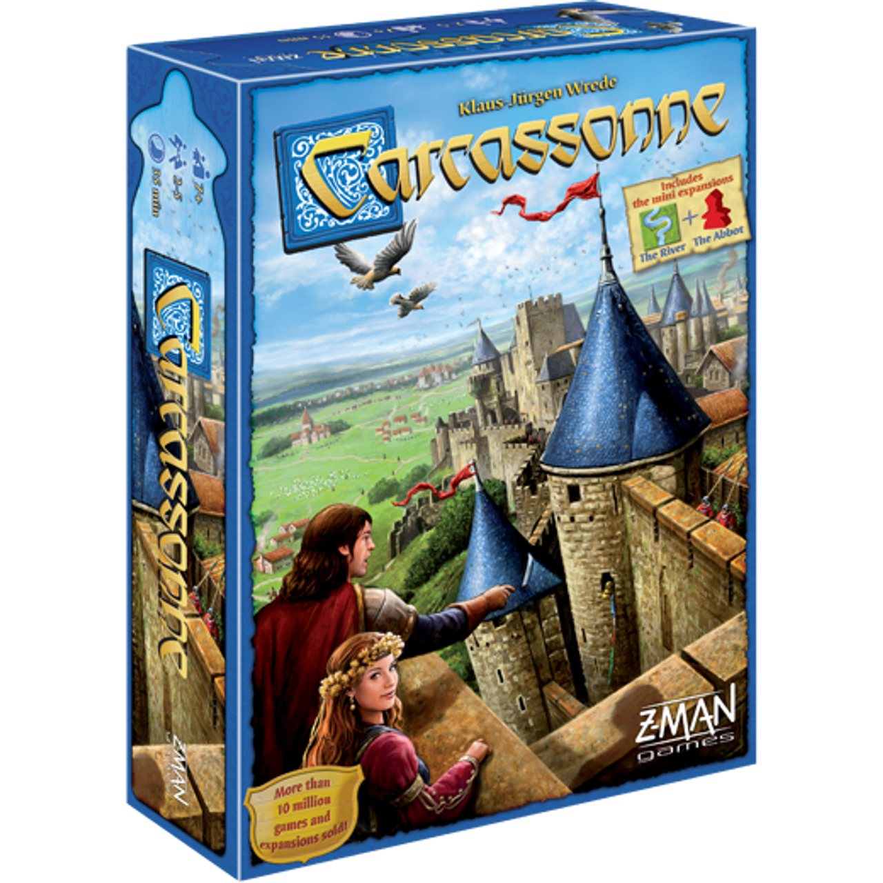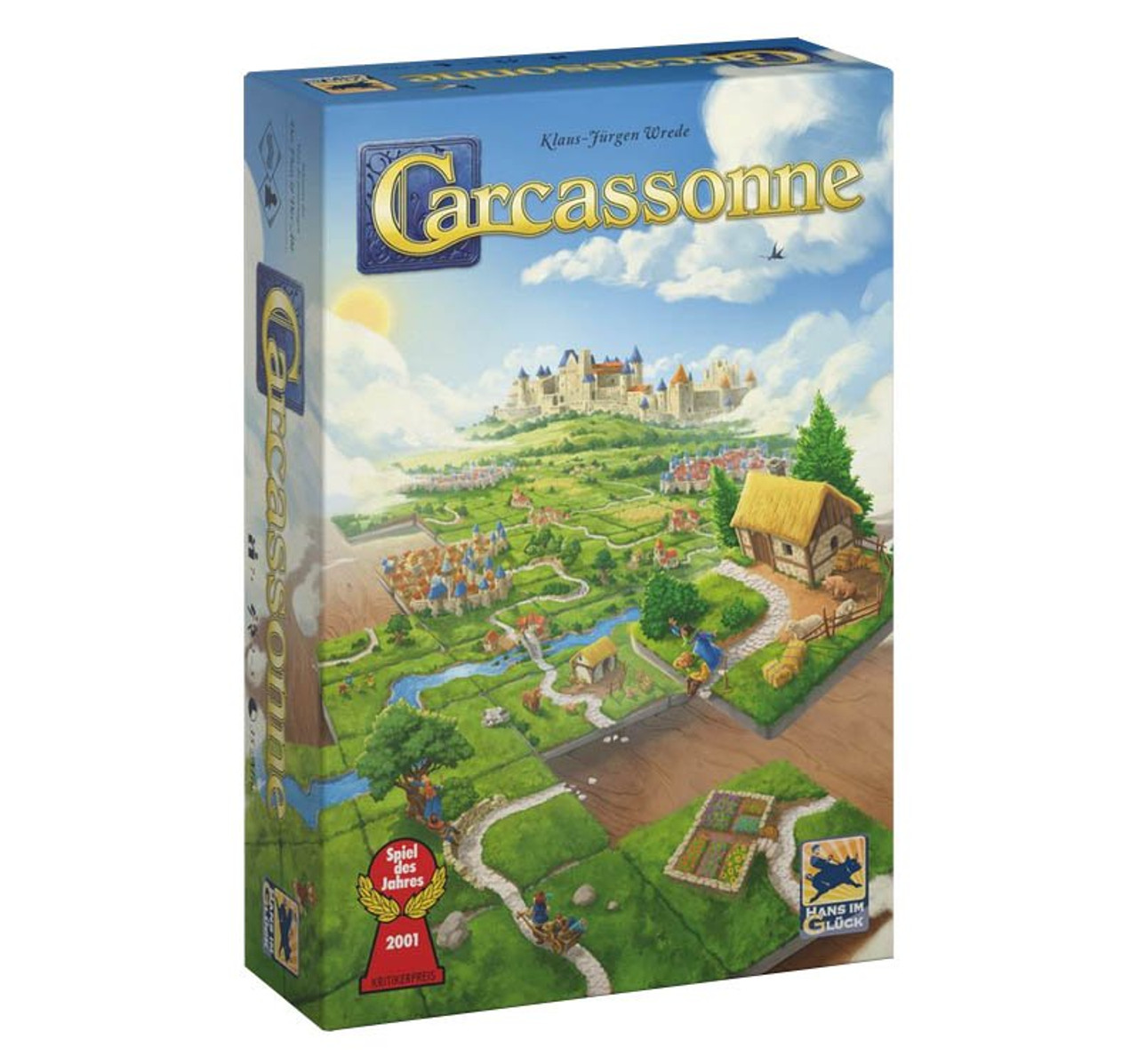 Inspired by the medieval fortress in southern France of the same name, Carcassonne is a tile-laying game in which players fill in the countryside around the fortified city. Players choose from tiles that depict cities, roads, monasteries, and fields; each new tile placed creates an ever-expanding board on which players can then add their followers. Players score points by having followers on features as they're completed. The player who makes the most strategic placements of tiles and followers will score the most points and win the game.