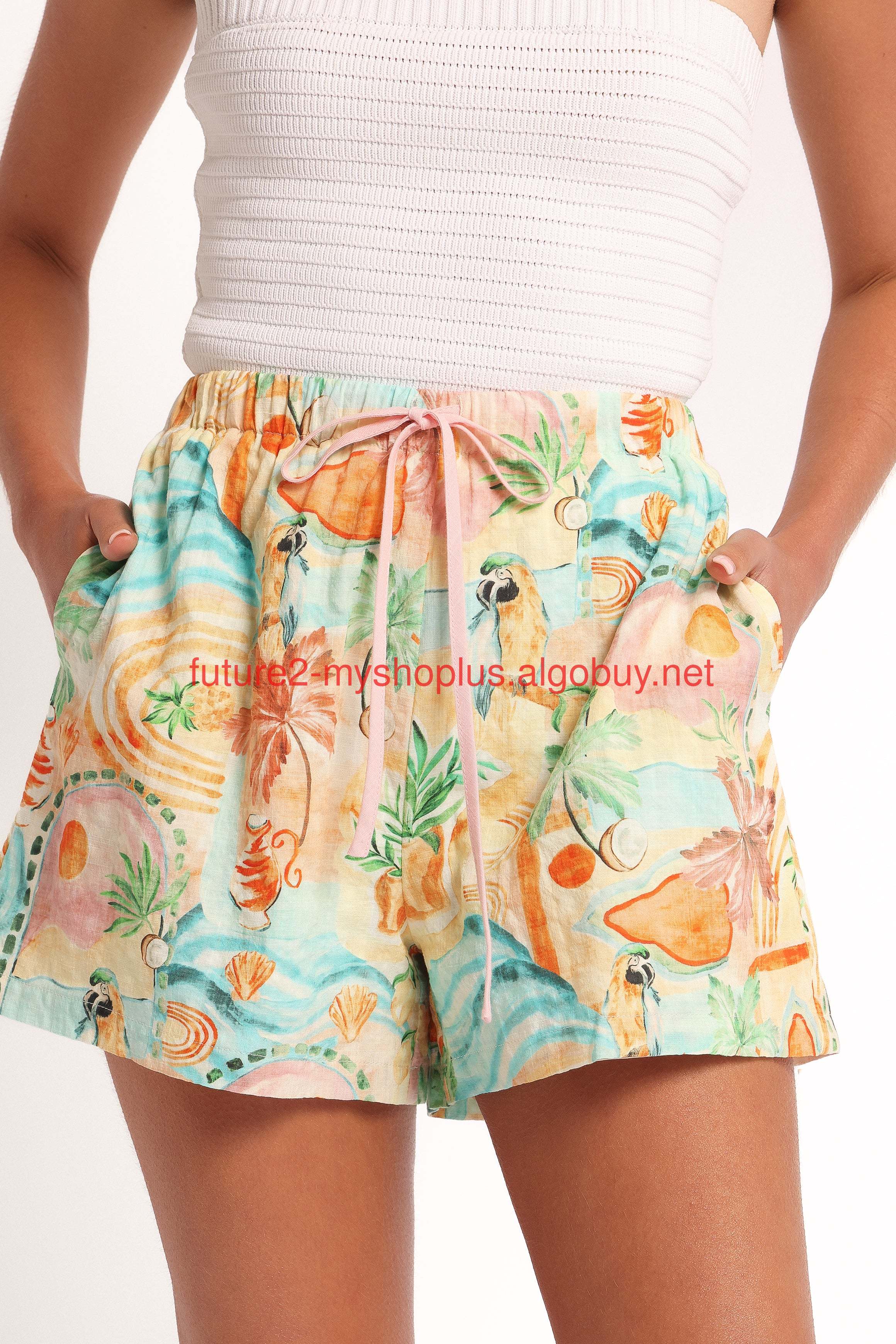 DETAILS Breezy, chic, and effortlessly cool, the Caspian Short - Golden Palm is your ultimate go-to for vacation-inspired style. Designed with a high-rise fit to flatter your silhouette, its elasticised waistband and adjustable drawstring tie ensure all-day comfort without compromising on style.