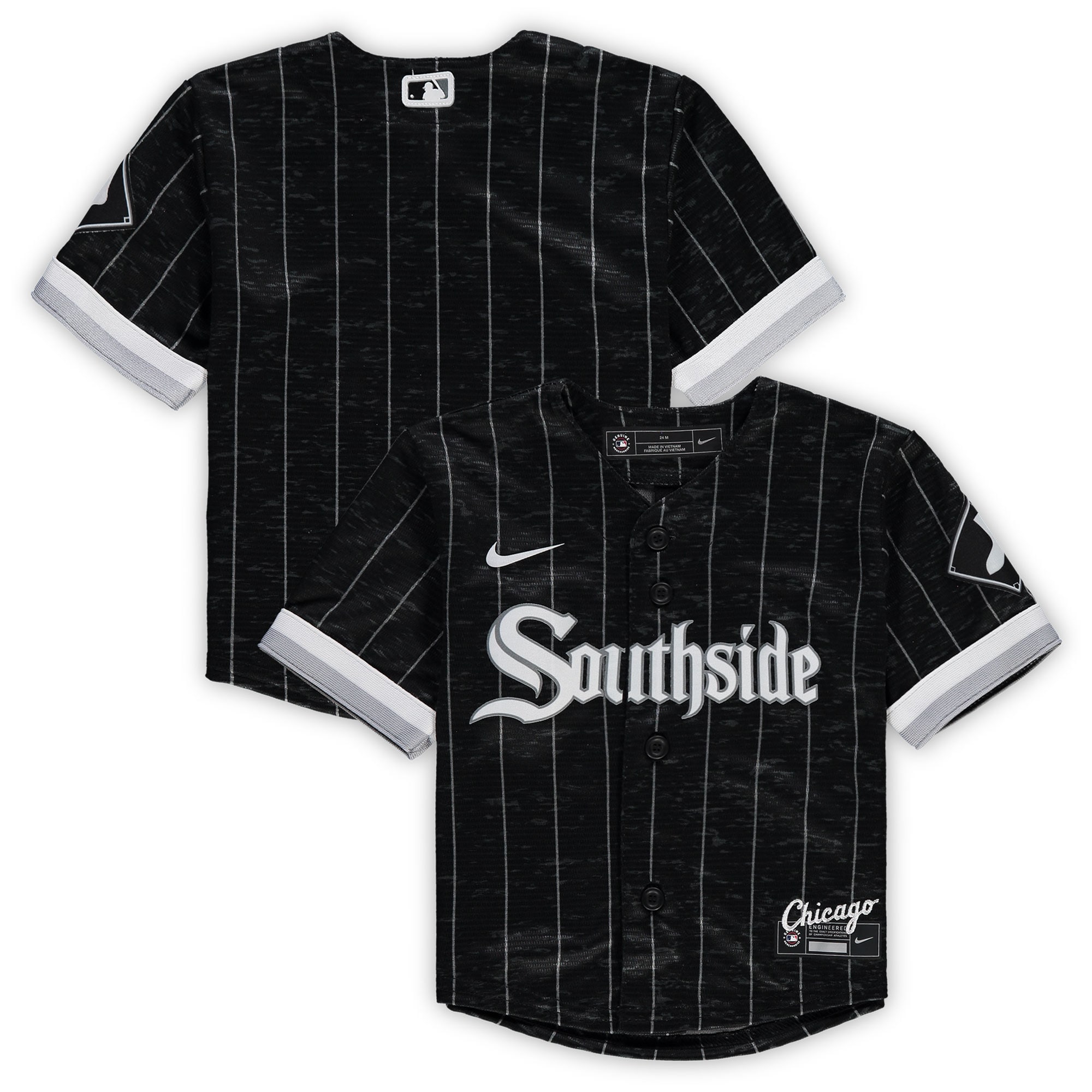 Your kiddo will look like the #1 Chicago White Sox fan when wearing this 2021 City Connect Replica jersey from. It features a heat-sealed applique on the shoulder and jock tag near the hem as well as exciting team graphics on the front. The full-button front resembles a classic baseball top so they can represent their favorite players on the Chicago White Sox.