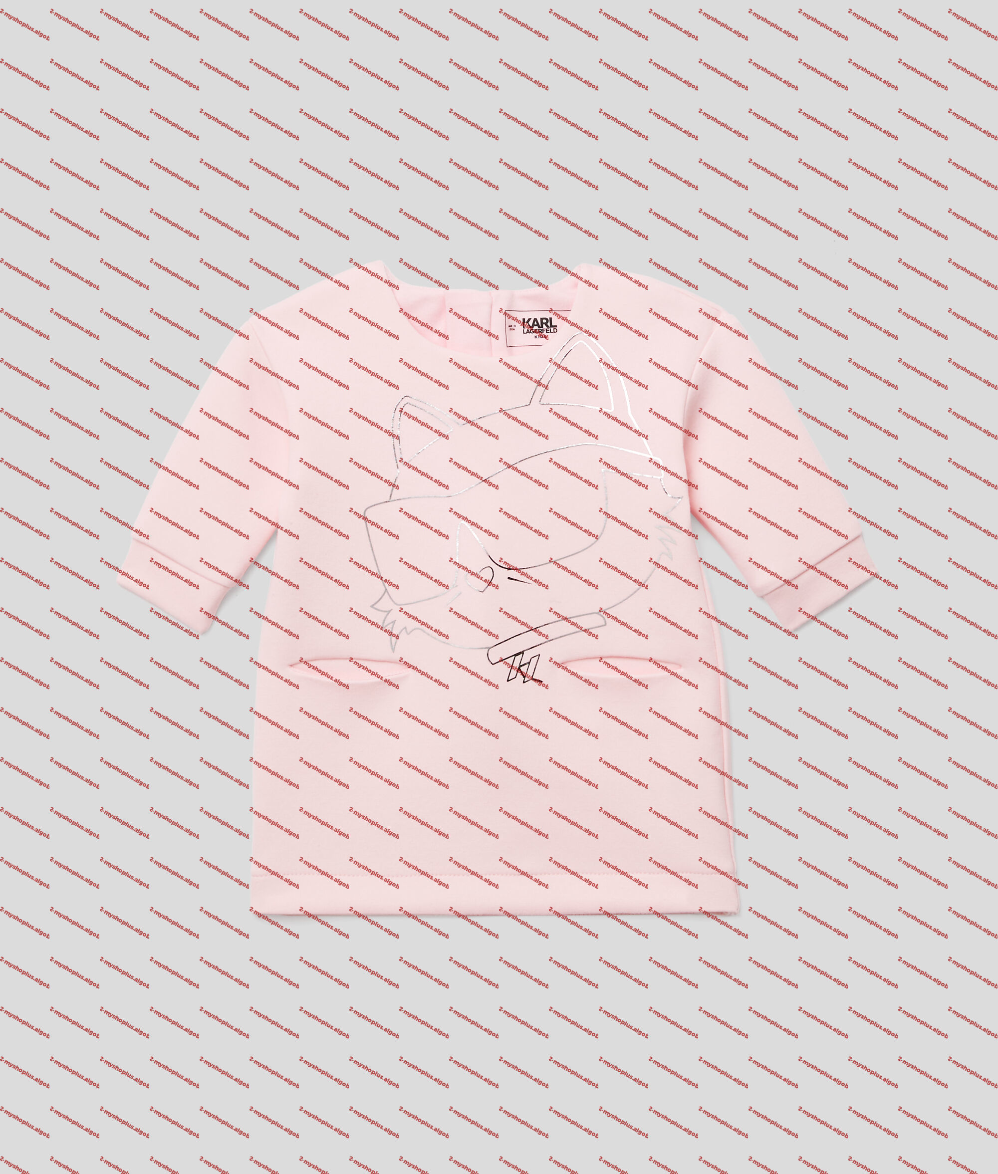 Une robe sweat douce et extensible ornée d'un imprimé Choupette métallisé. Complétez-la avec un legging pour créer un look élégant et confortable.